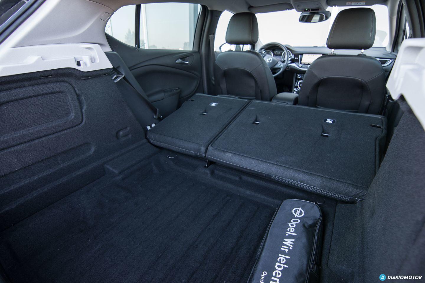Hay rivales con plazas traseras mayores, pero no demasiados. Además, el detalle de añadir dos puertos USB a las plazas traseras me parece todo un acierto. En esta unidad, los asientos traseros eran calefactables (Pack Invierno, 600 euros). El acceso a las plazas es ligeramente mejorable, ya que el hueco de la puerta no es grande y la puerta no se abre demasiado. En personas ancianas podría suponer la diferencia entre requerir ayuda o poder entrar y salir del coche por sí mismas. En cuanto al maletero, este Opel Astra tiene un volumen de carga máximo de 370 litros. Es un volumen correcto, pero rivales como el Peugeot 308 o el Renault Mégane superan dicha cifra.