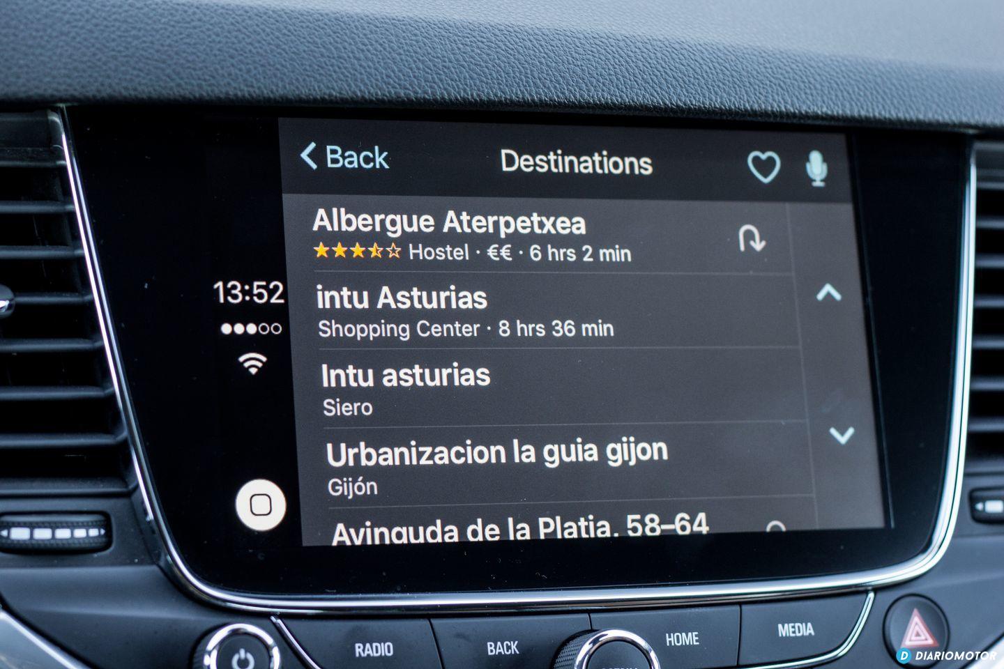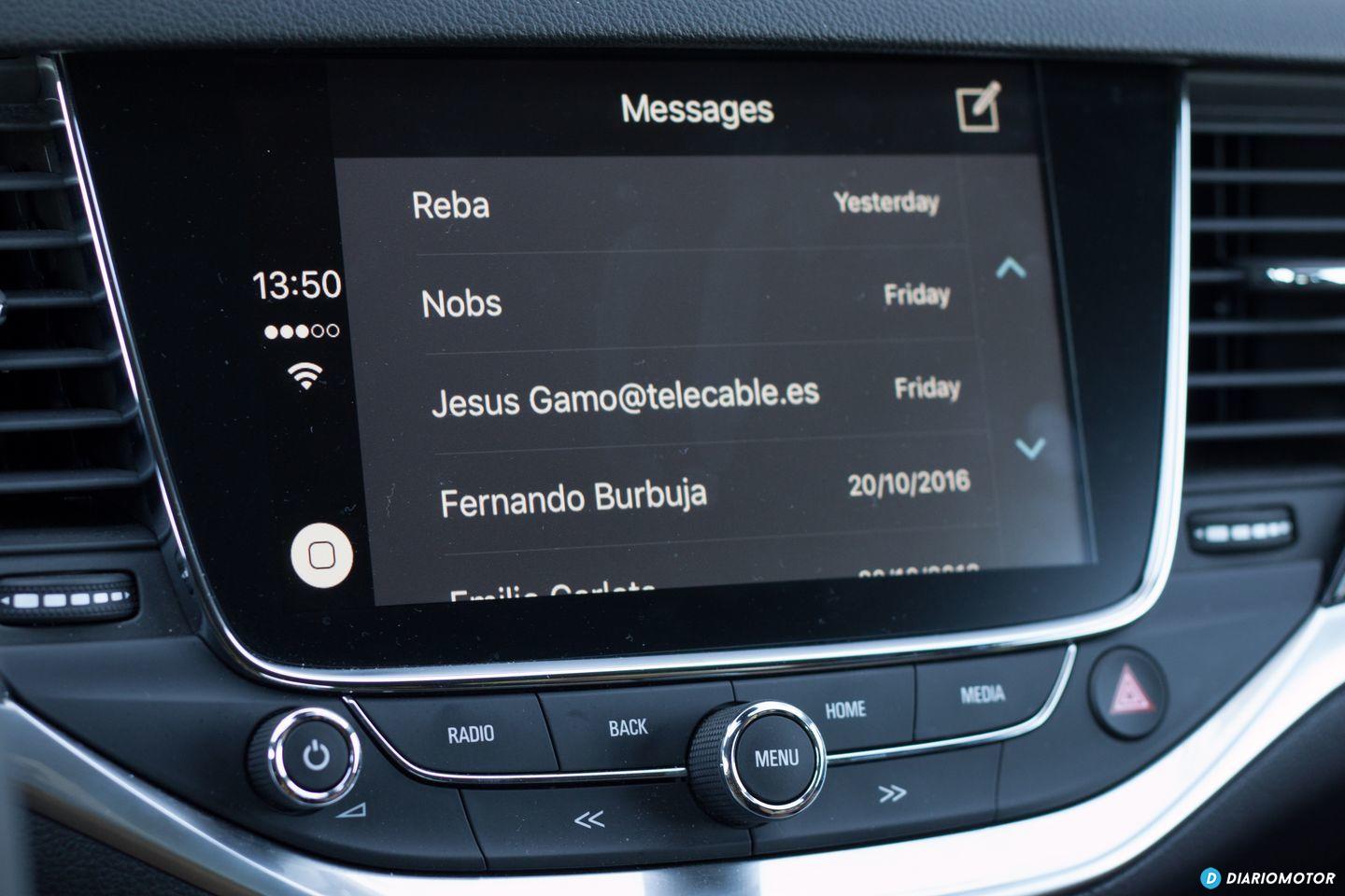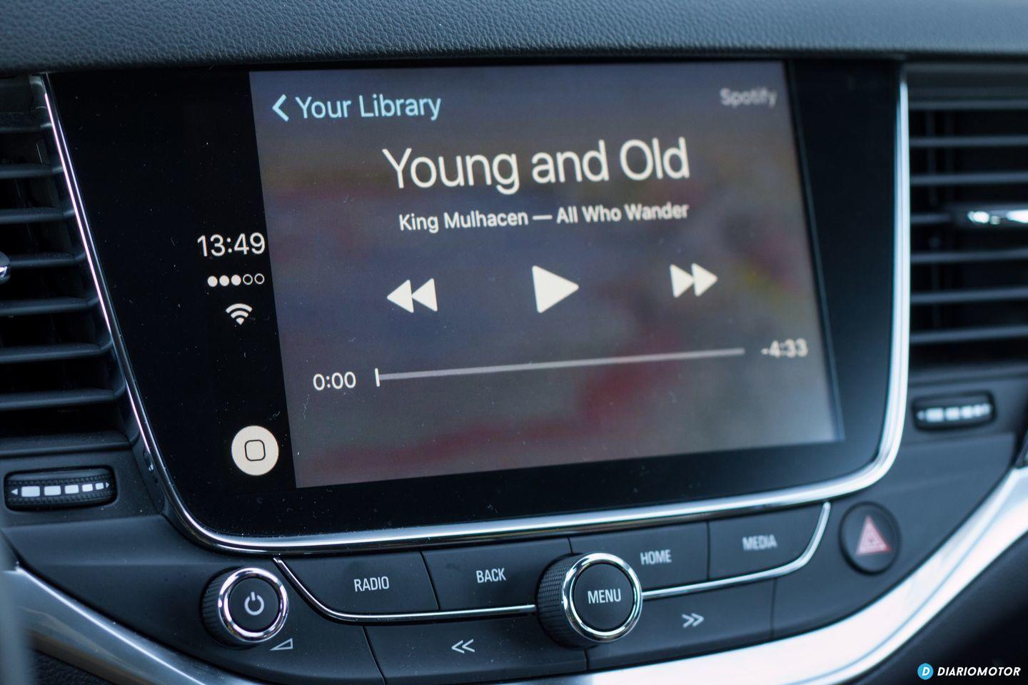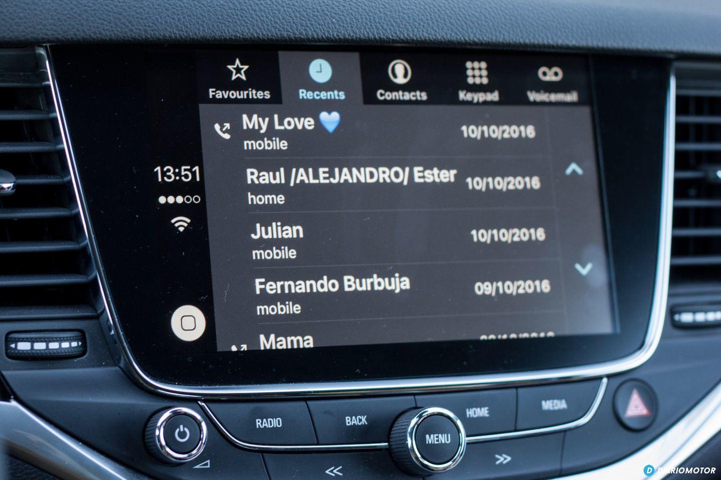 Nuestra unidad de pruebas estaba equipada con el sistema de infotainment IntelliLink 900 Navi (extra de 850 euros). Su funcionamiento es muy fluido, sus menús claros, y es compatible con Apple CarPlay – ahora ya es también compatible con Android Auto, pero no en esta unidad de pruebas. Como mi teléfono es Android, tuve que comprobar su funcionamiento con el iPhone de mi pareja. Gracias a una SIM 4G incluida, el coche se convierte en una red WiFi con ruedas, a la que yo y otros tres pasajeros pudimos conectarnos al mismo tiempo. Es especialmente útil para el streaming de música. Esta unidad también tenía activados los servicios OnStar, de asistente personal, localización del vehículo y llamada de emergencia.
