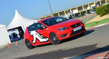 Momento de abordar la primera prueba. Dos unidades del SEAT León Cupra de 300 CV nos esperan para realizar una frenada de emergencia en seco desde una velocidad de 95 Km/h. Esta prueba se realiza con 3 pasadas por coche comparando el Michelin Sport 4 S frente al Bridgestone Potenza S001. Tras realizar las 6 frenadas, lo cierto es que intuyo de forma leve que el modelo de Michelin es mejor, pero no sabría decir cuanto. El sistema de medición analiza las 3 pasadas de cada neumático, determina una media y realiza una comparativa dando victorioso al Pilot Sport 4 S con un recorte en la distancia de frenado cercana a los 2 metros.