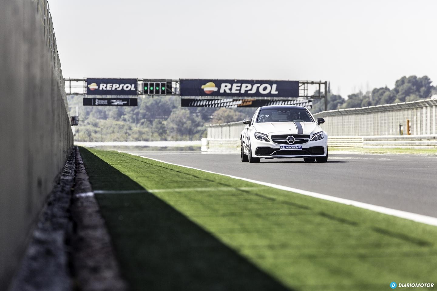 Para finalizar la jornada de pruebas nos espera el Circuito Ricardo Tormo en su configuración de GP a los mandos de un Mercedes-AMG C 63 Coupé. Aquí ya no existen neumáticos con los que comparar, sino que se trata de ir lo más rápido posible para comprobar cómo soportan los Pilot Sport 4 S el paso de decenas de manos diferentes, velocidades por encima de los 200 Km/h y repetitivas frenadas de infarto. Con este ejercicio de 6 vueltas Michelin pretende que percibamos el trabajo realizado en el Sport 4 S para que no desfallezca con el uso y el desgaste, y es que en esta nueva cubierta han querido hacer especial hincapié en la durabilidad y el mantenimiento de prestaciones. Lo cierto es que aunque no pudimos conducir estos neumáticos recién instalados o mínimamente rodados, tuve la suerte de ser el último de una larga lista de conductores en poner a prueba estos neumáticos. Esto suponía que las gomas acumulaban ya una notable fatiga, pero mi sensación fue la de gozar de un control absoluto sin percibir perturbaciones o síntomas de desfallecimiento y creerme que busqué rodar lo más cerca del límite que coche e instructor me permitieron.