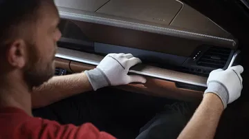 El salpicadero, las puertas y todos los paneles interiores están tapizados en una combinación de cuero en tonos «marrón Cohiba» y «marrón trufa», con un pespunte en color crayón. El contraste lo aporta la madera natural que también encontramos en el salpicadero, así como la tela en tartán de los asientos. Es una combinación de colores muy castiza – propia de una casa de campo de una dehesa – pero os prometo que en vivo, el resultado final es una auténtica delicia. Incluso las alfombrillas son específicas, con un guiño a España y Portugal.