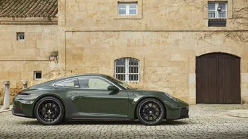 Su color Quercusverde, una opción Paint to Sample Plus es el mismo color de las hojas de encinas o alcornoques, y varios emblemas específicos dejan claro que esta unidad es una de las Cuarenta producidas. Por cierto, esta unidad es la única que no será vendida a un particular: se queda en manos de Porsche Ibérica y tenemos el inmenso honor de poder probarla. La spec interior del 911 Cuarenta es un auténtico espectáculo.