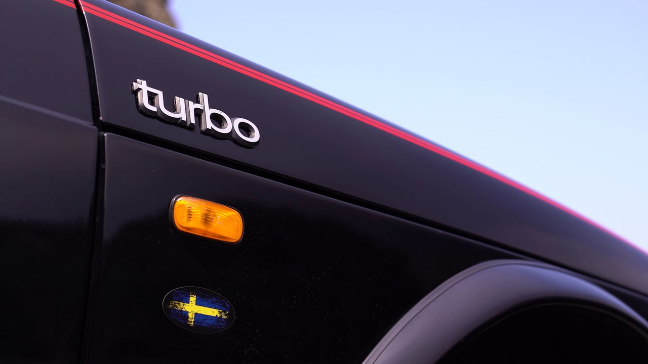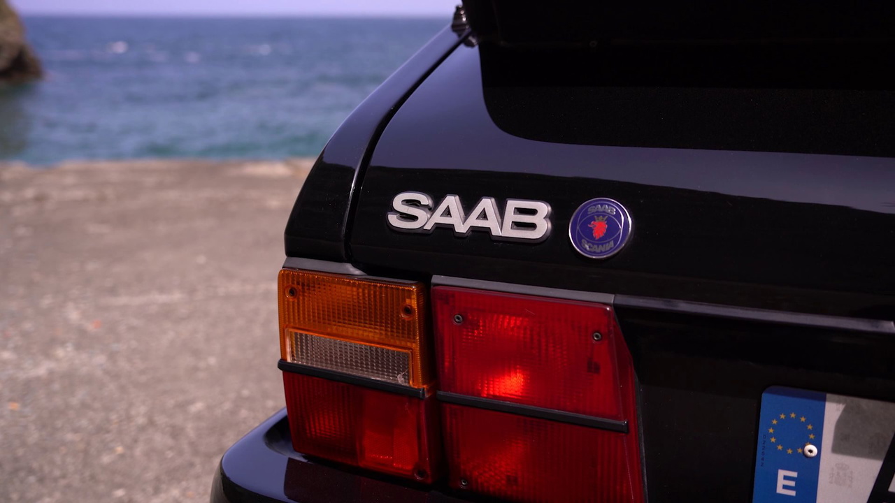 Esas llantas le dan al coche un aspecto muy deportivo y su forma de tres palos es instantáneamente reconocible como un Saab. Por si no te habías percatado, la palabra Turbo se repite en cuatro ocasiones en el exterior del coche. Era una de las palabras fetiche para cualquier equipo de marketing en la época. En la zaga podemos apreciar de forma clara que se trata de un coupé-combi, un híbrido entre un coupé y un familiar. Su portón trasero es gigantesco y tenemos un enorme spoiler tipo «cola de ballena», parte del kit Airflow.