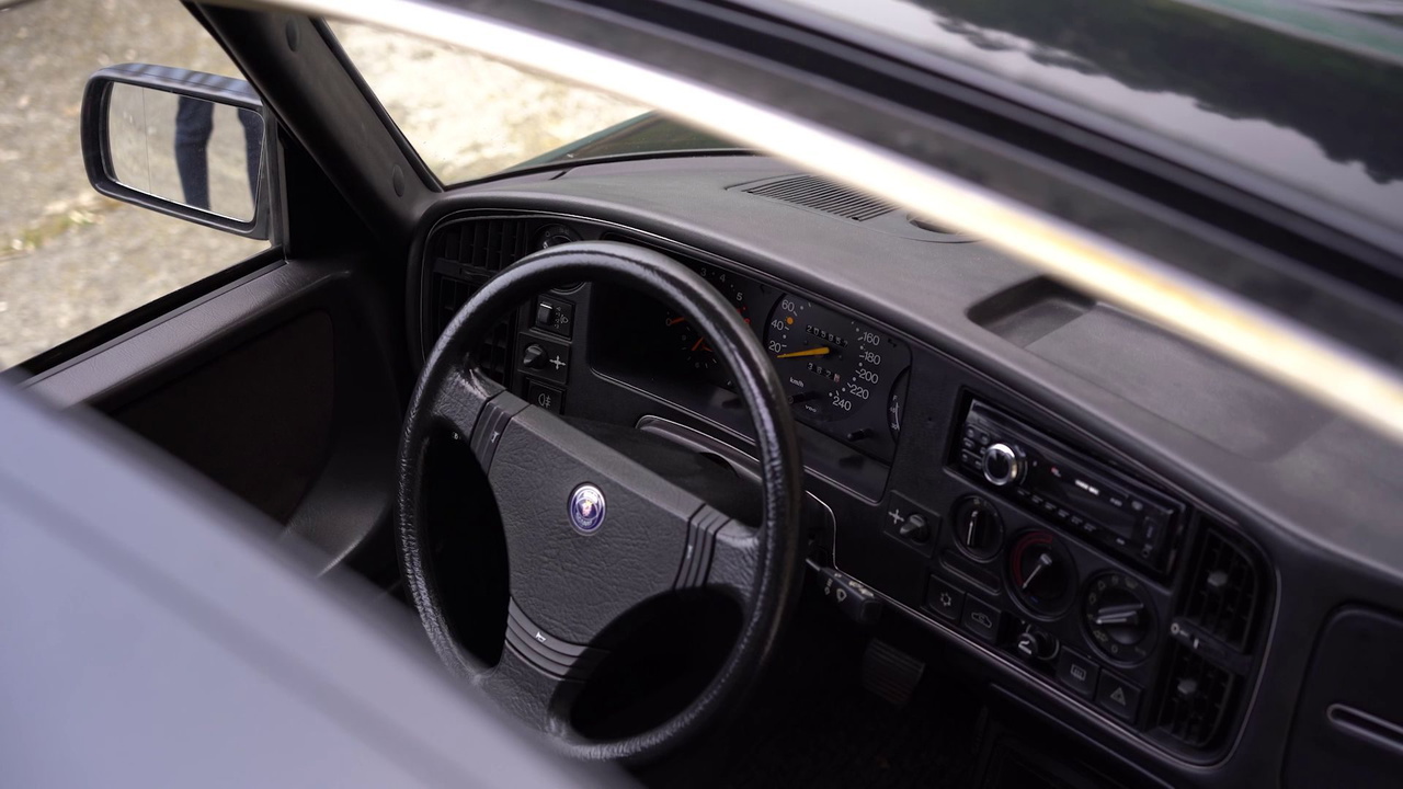 Top Gear lo probó en un conocido episodio, en el que se dejaba caer sobre el techo un BMW Serie 3 E30 y un Saab 900, saliendo el BMW muy mal parado. La obsesión por la seguridad no era algo nuevo en Saab: ya el primer 92 estaba diseñado para ser mucho más seguro que cualquier otro coche. Gran parte de esa seguridad venía de una carrocería muy rígida y resistente, construida con acero de alta calidad. Tampoco podemos dejar pasar en la vista lateral la enorme superficie acristalada del coche y sus míticas llantas Aero en 16″, un extra de la época.