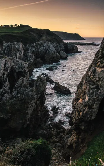 Las praderas verdes flanquean sin tregua la carretera mientras la luz comienza a caer. La vista de un pequeño camino asfaltado hace que nos desviemos en nuestro apresurado camino y bendito desvío. Unos pocos minutos después estamos en lo alto de un acantilado de espectaculares vistas con la única presencia de un caserío en un pequeño risco sobre el Cantábrico, todo ello en un verde pasto rodeado por la más absoluta soledad.