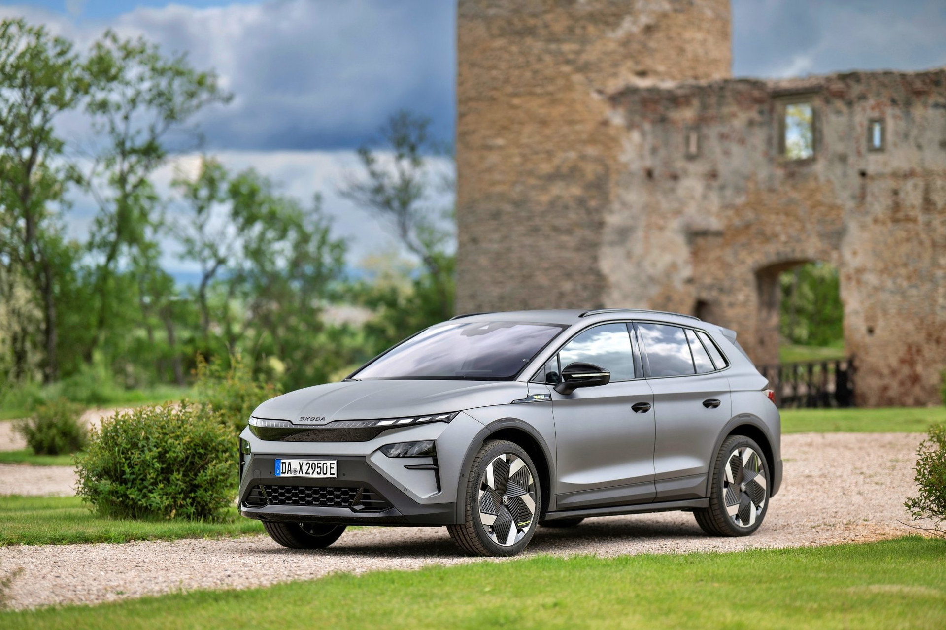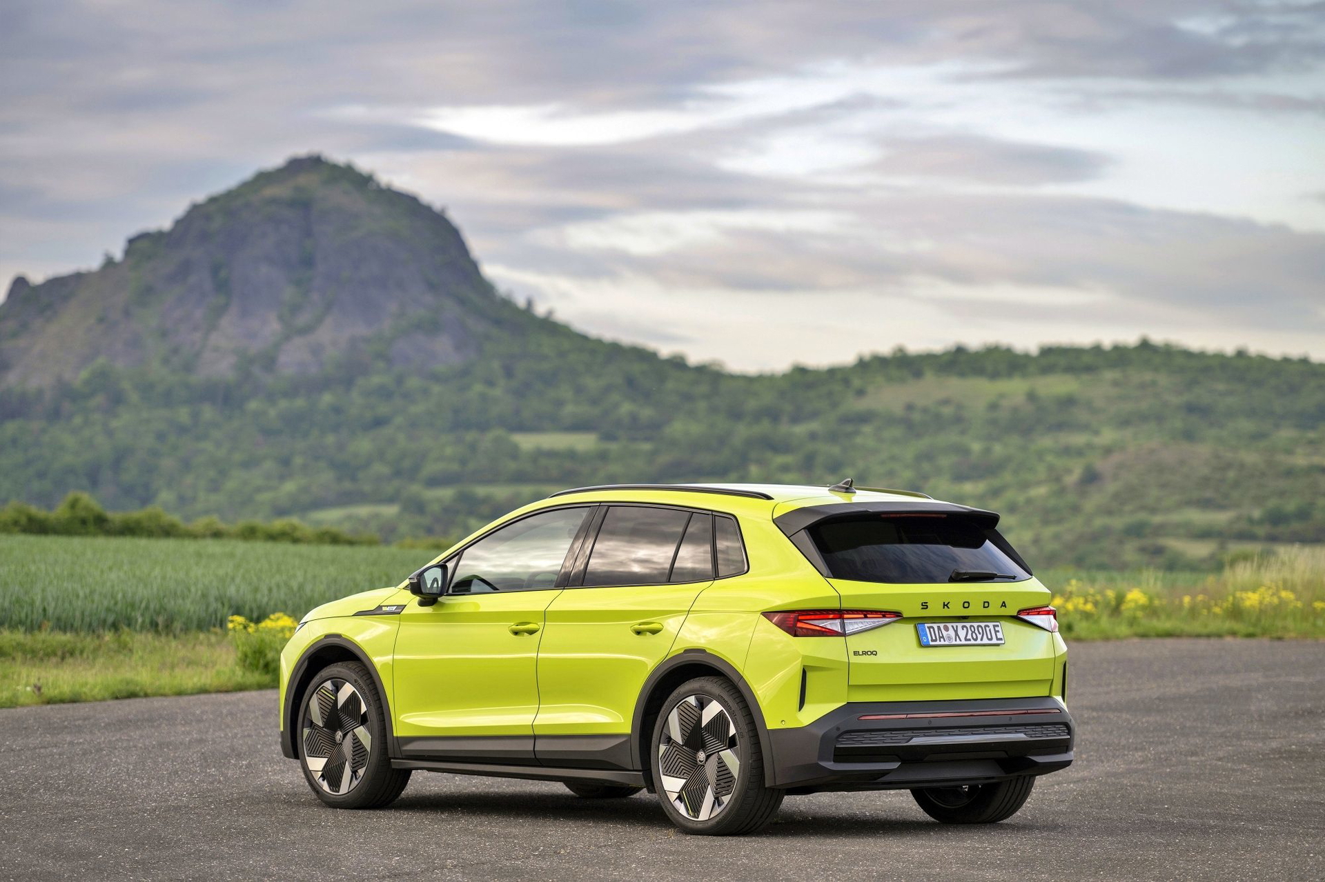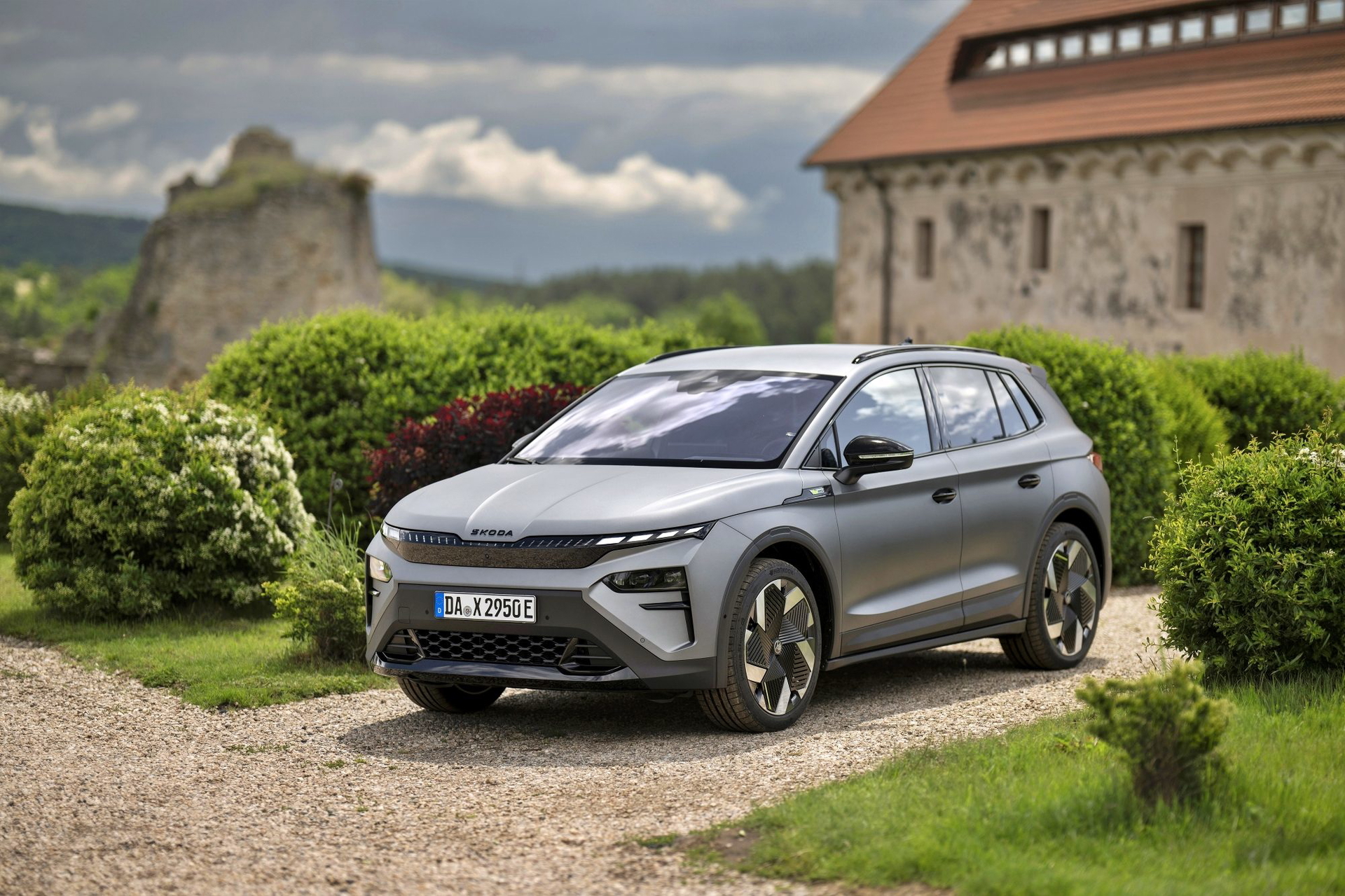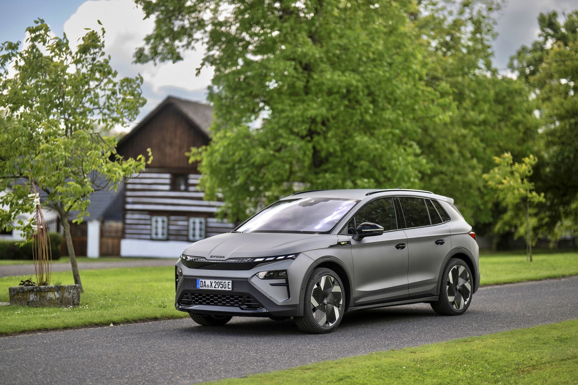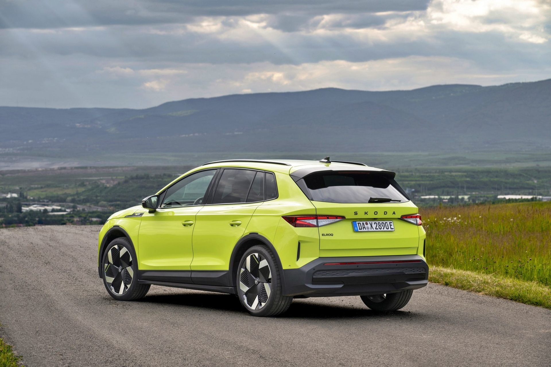 El lenguaje de diseño «Modern Solid» del Elroq se combina en este modelo con detalles en color negro, como las letras SKODA en el capó y el portón del maletero, las carcasas de los retrovisores o las barras de techo.