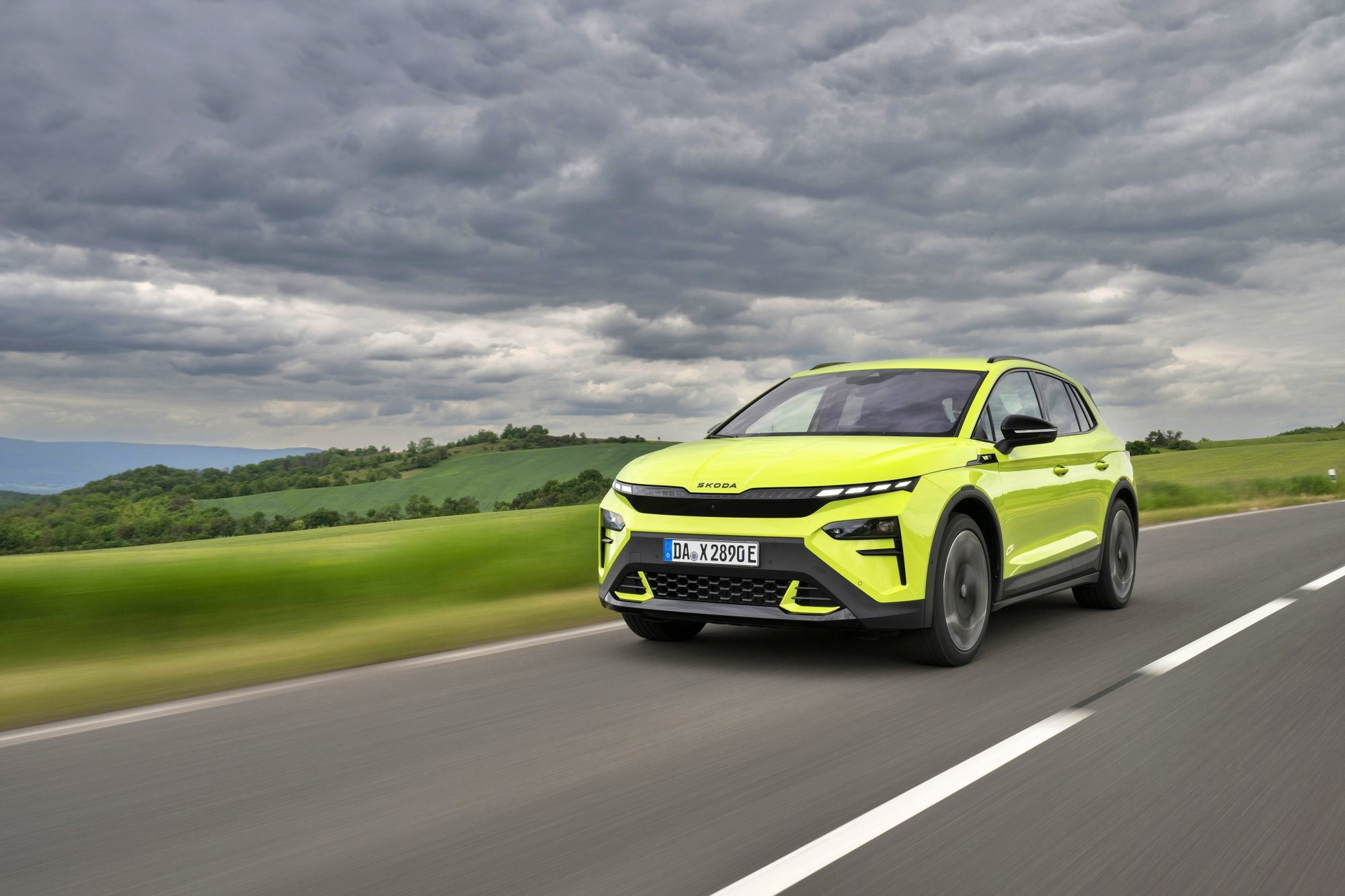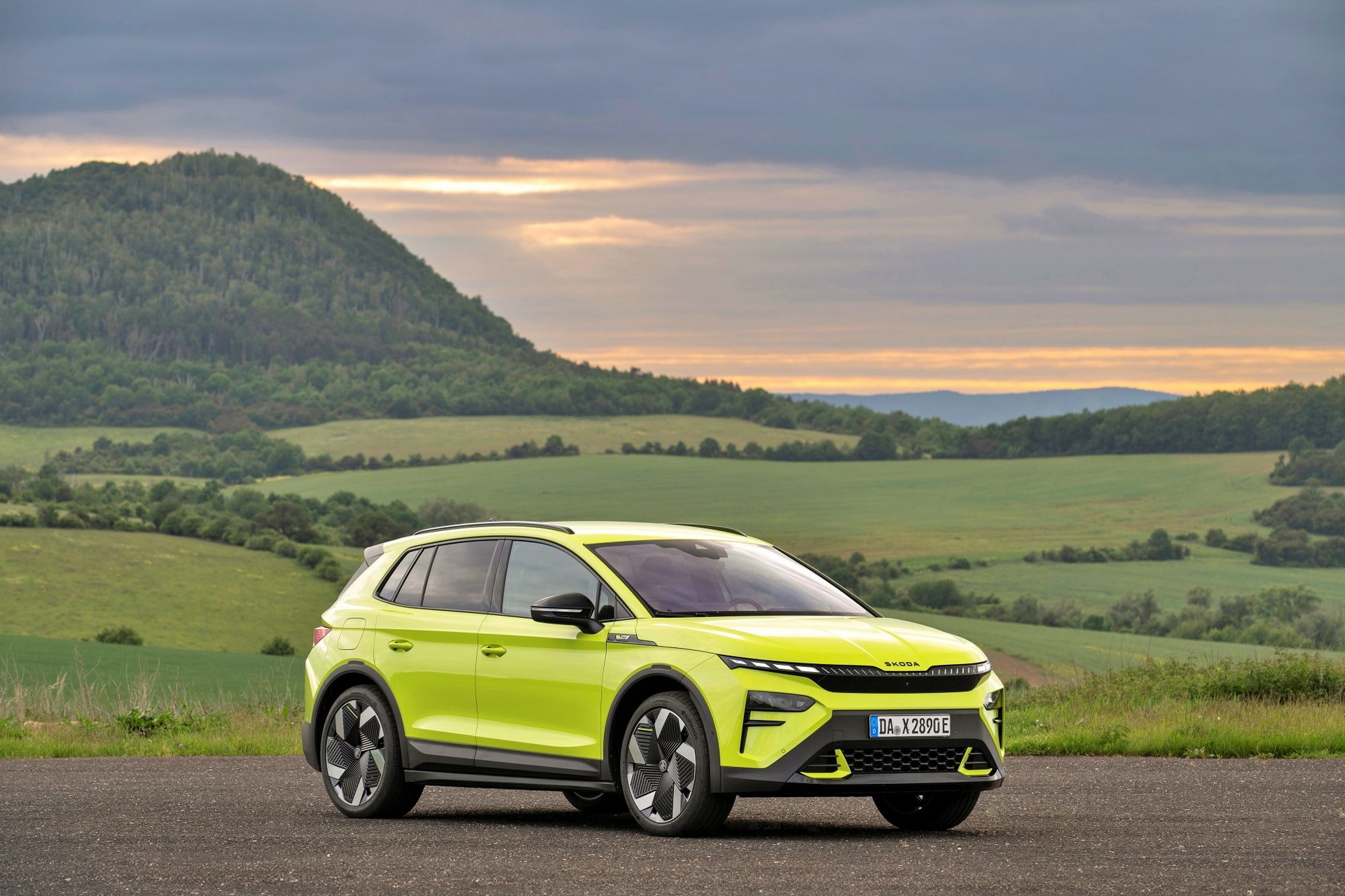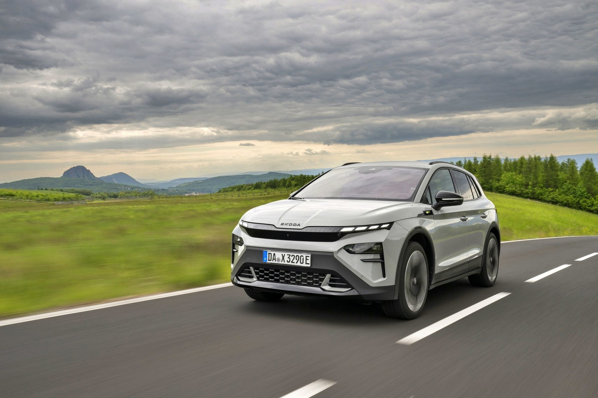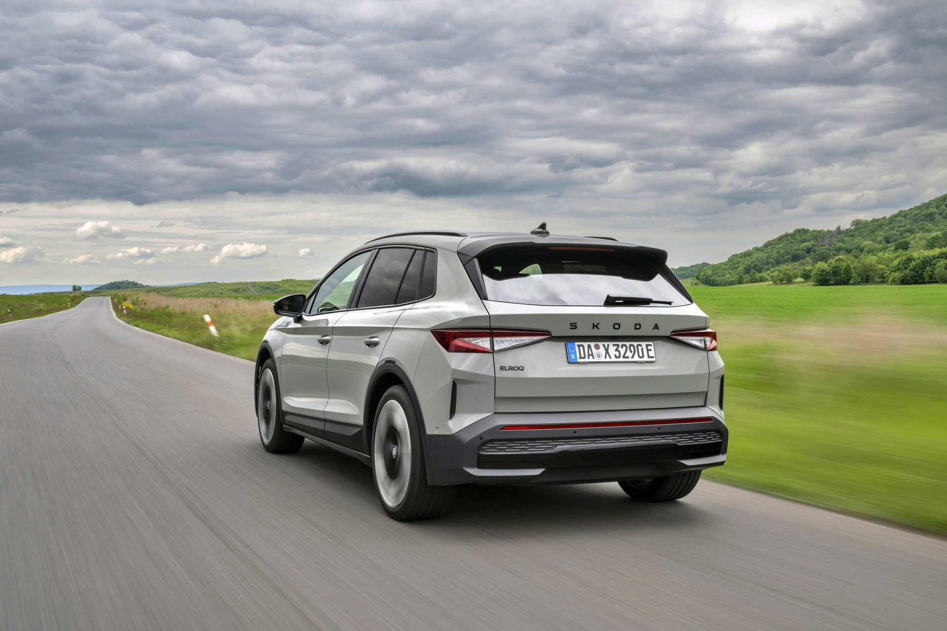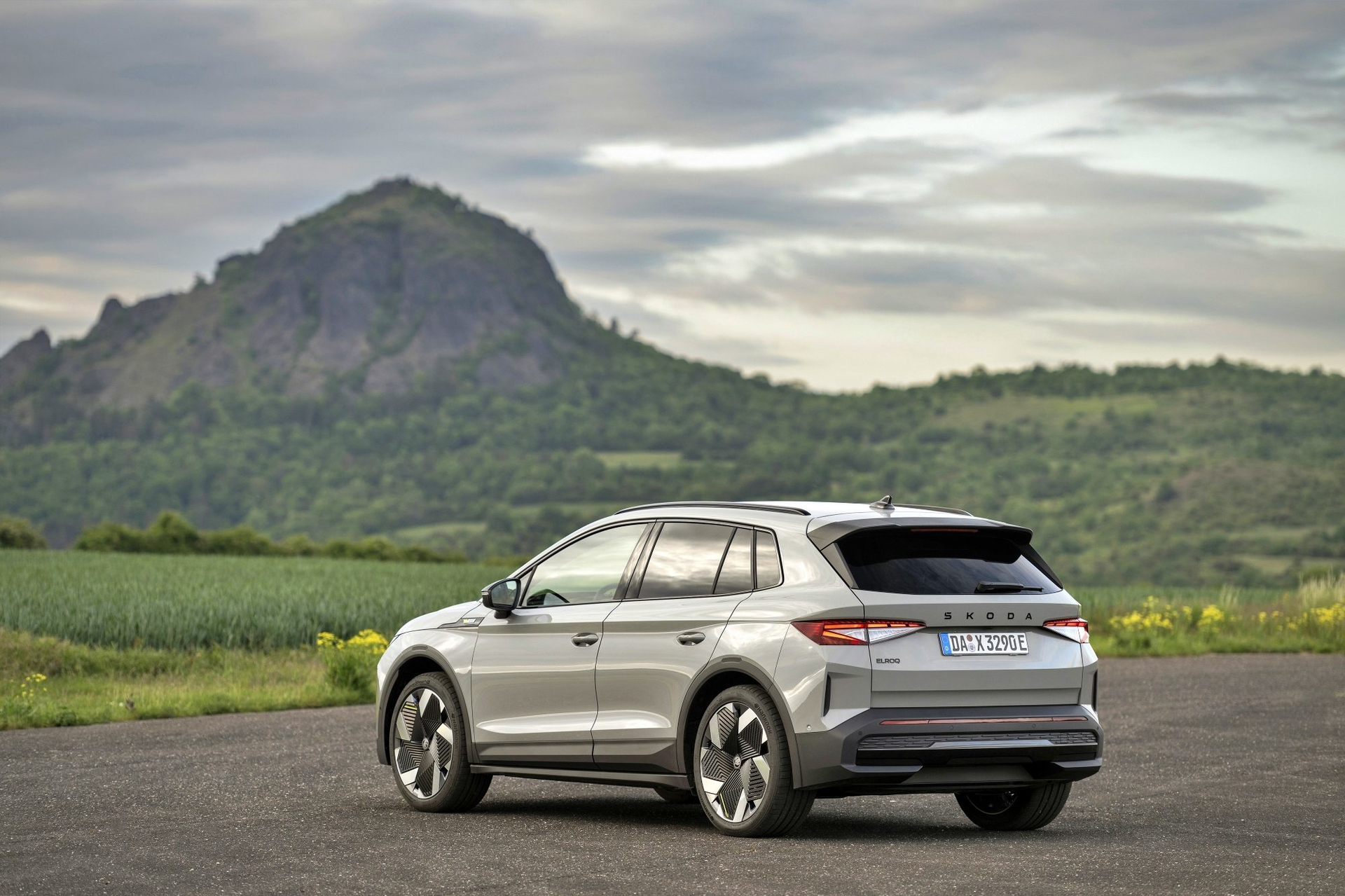 El lenguaje de diseño «Modern Solid» del Elroq se combina en este modelo con detalles en color negro, como las letras SKODA en el capó y el portón del maletero, las carcasas de los retrovisores o las barras de techo.