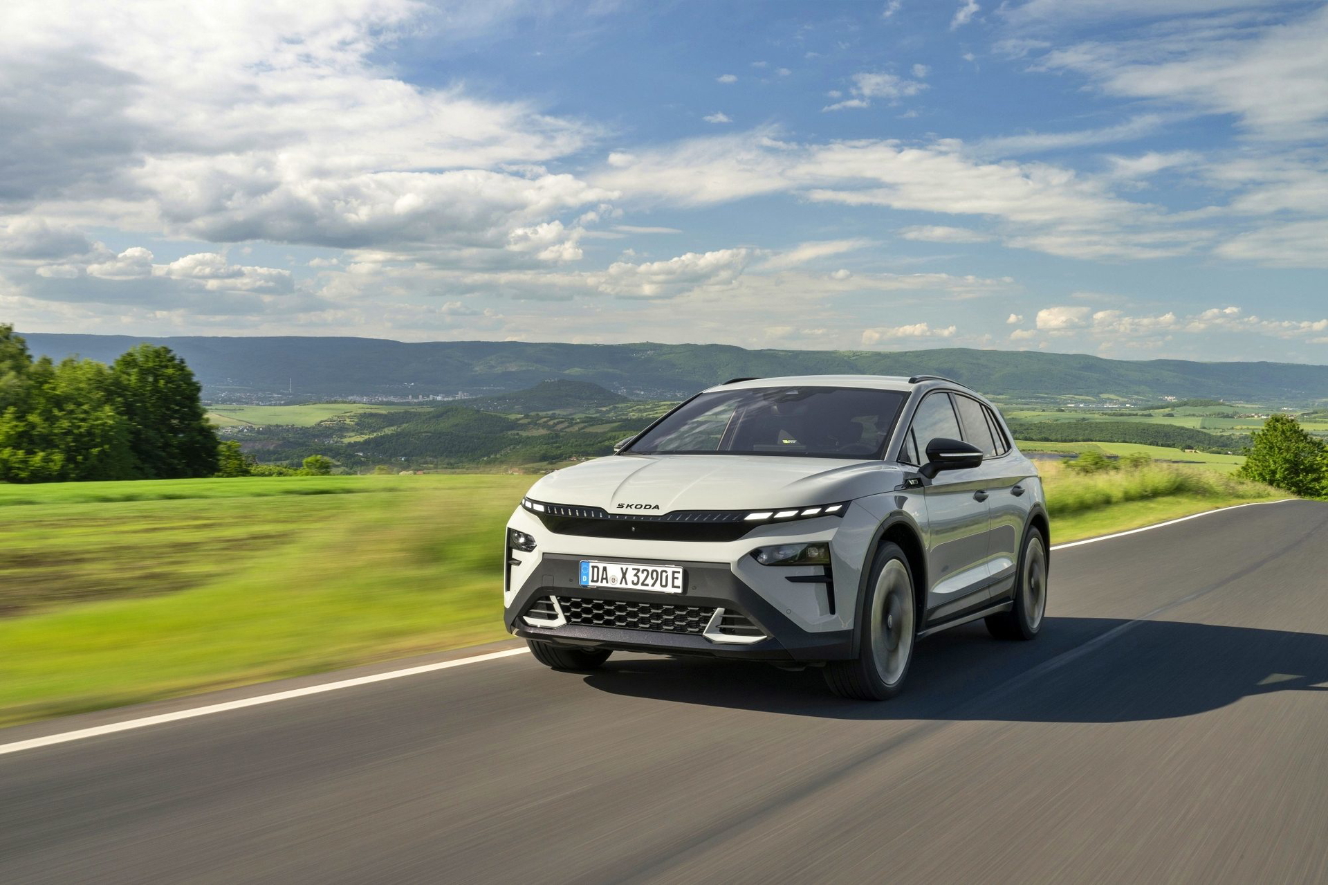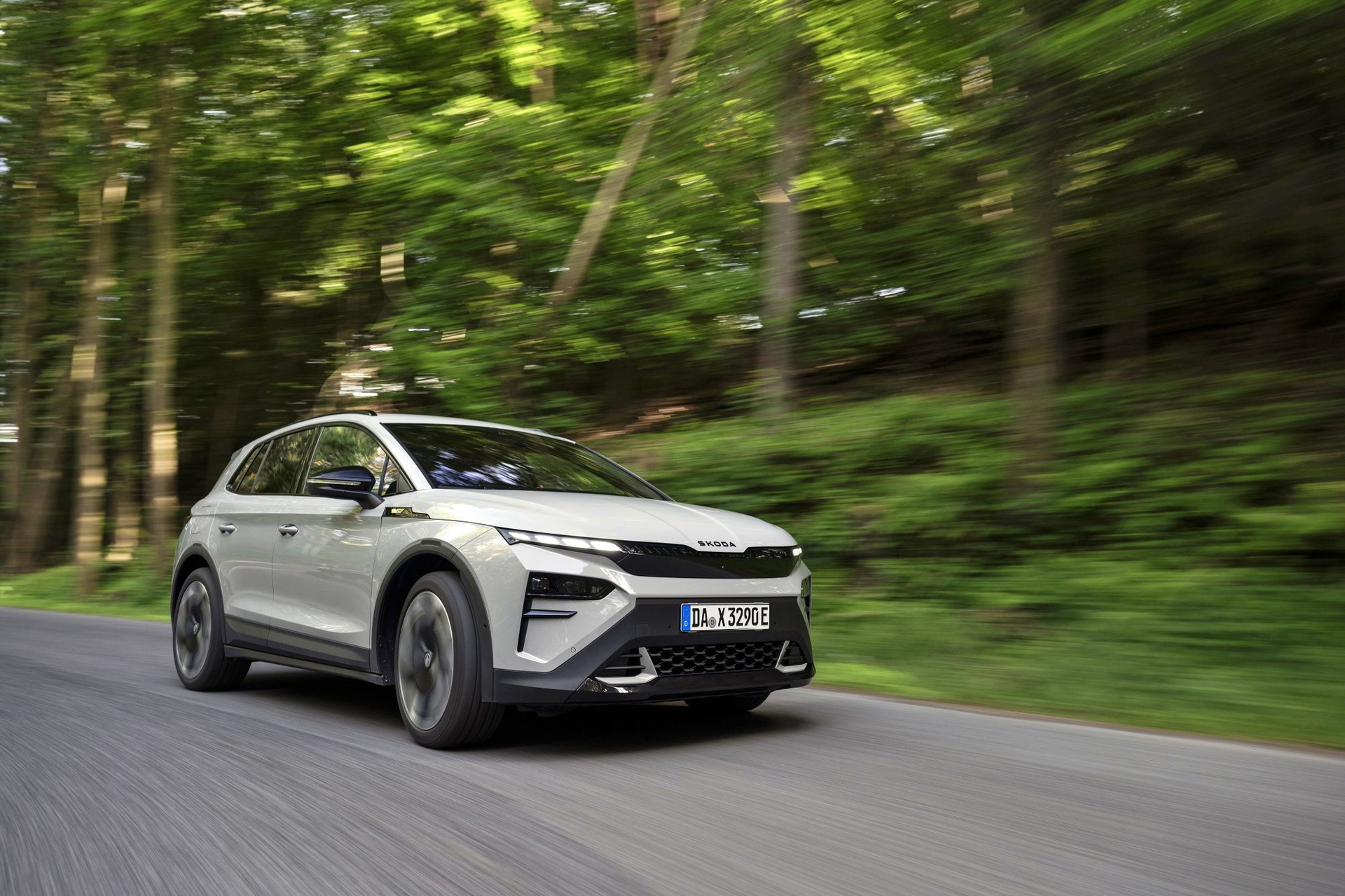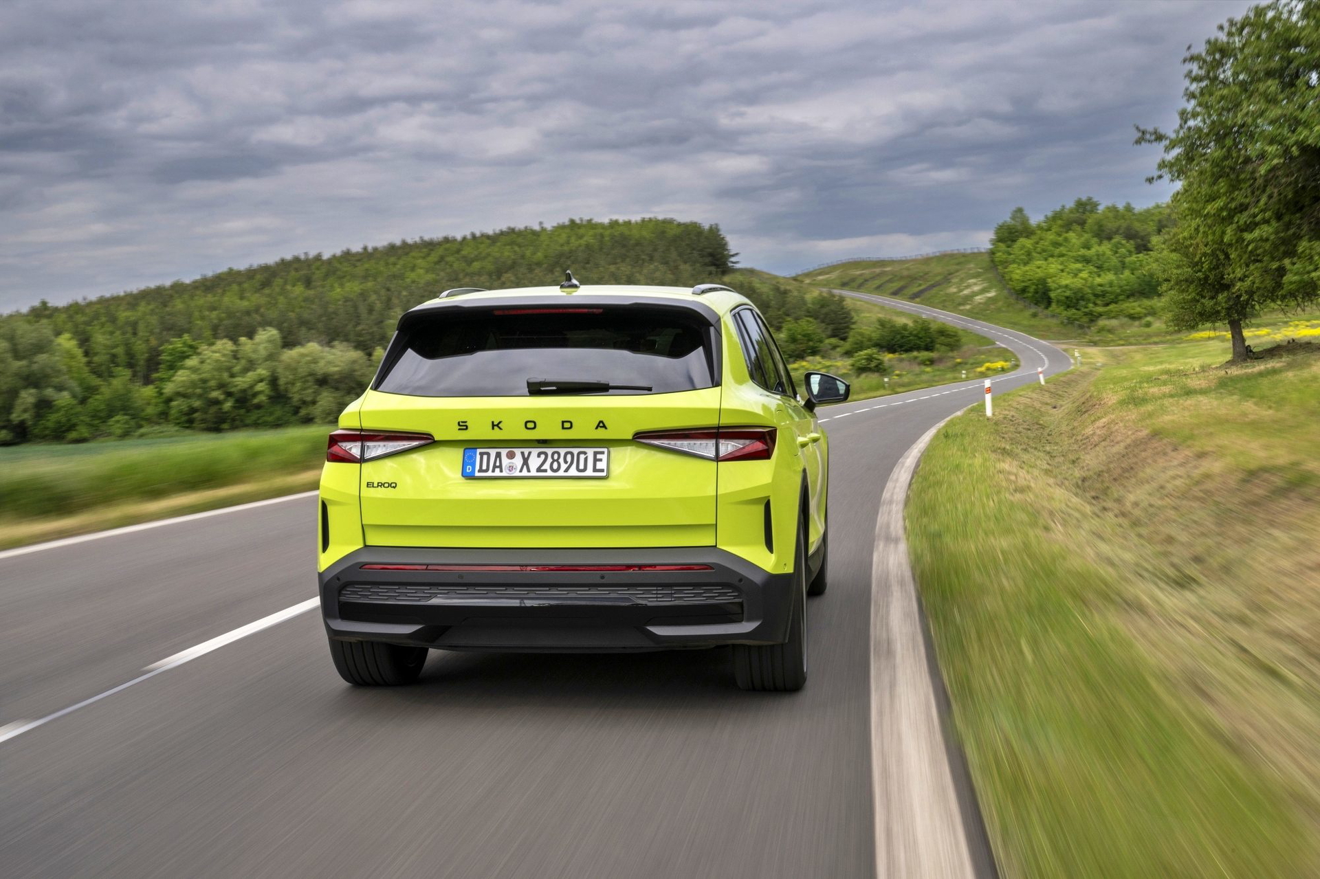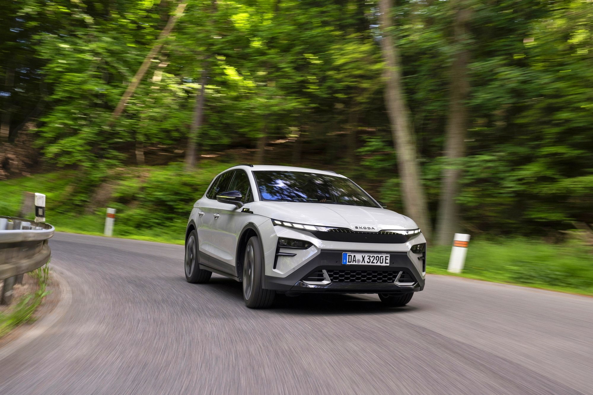 El lenguaje de diseño «Modern Solid» del Elroq se combina en este modelo con detalles en color negro, como las letras SKODA en el capó y el portón del maletero, las carcasas de los retrovisores o las barras de techo.