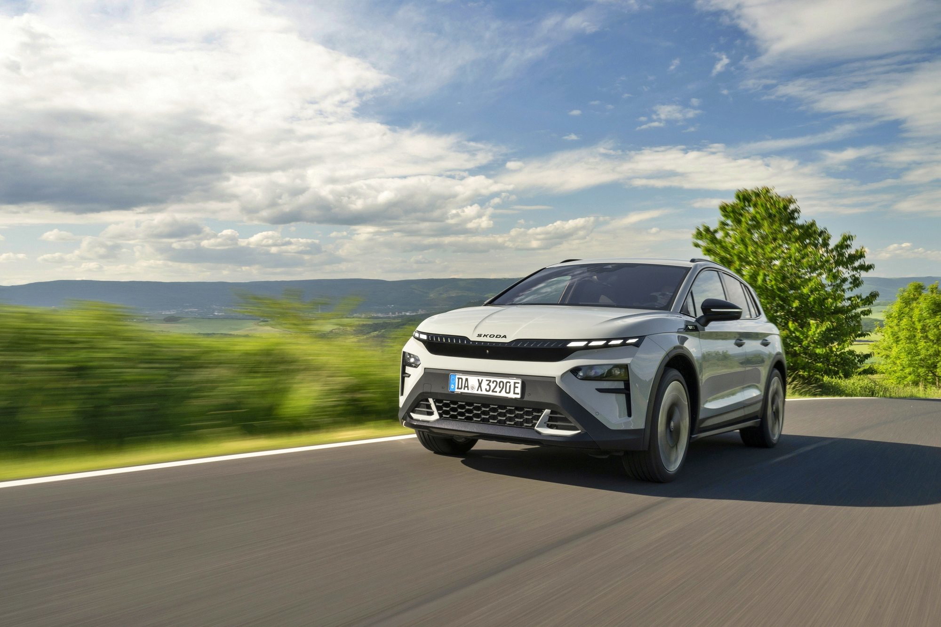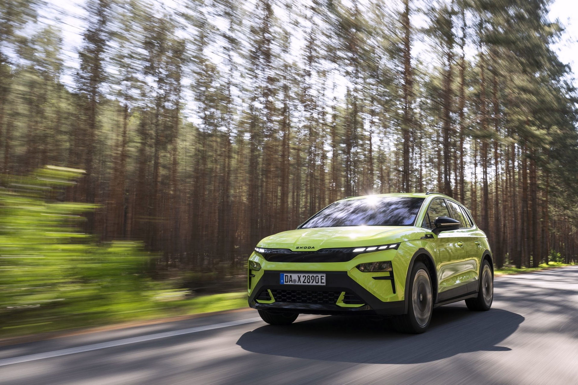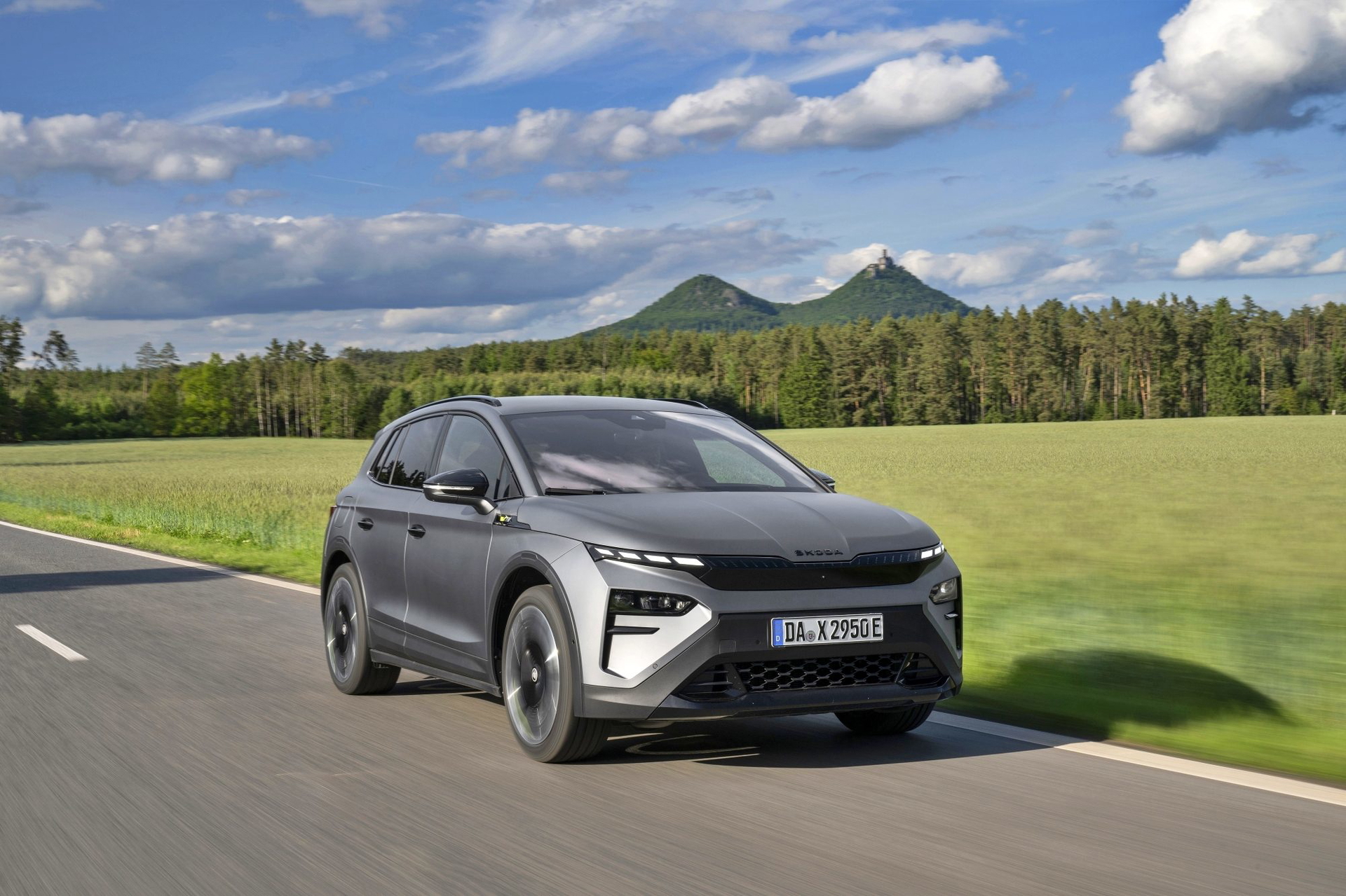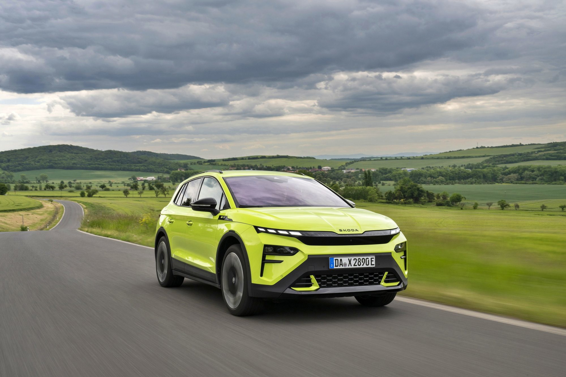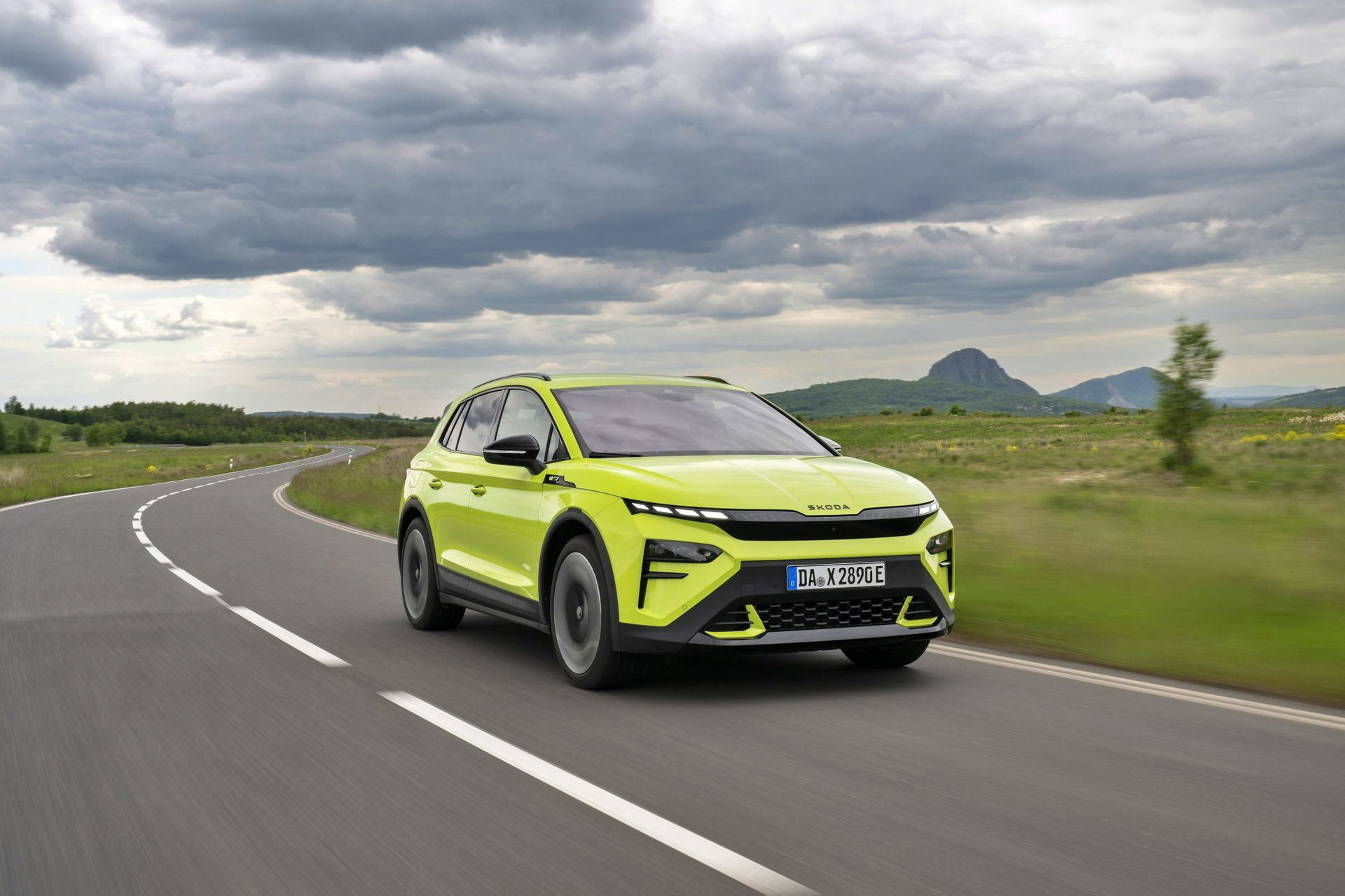 El lenguaje de diseño «Modern Solid» del Elroq se combina en este modelo con detalles en color negro, como las letras SKODA en el capó y el portón del maletero, las carcasas de los retrovisores o las barras de techo.