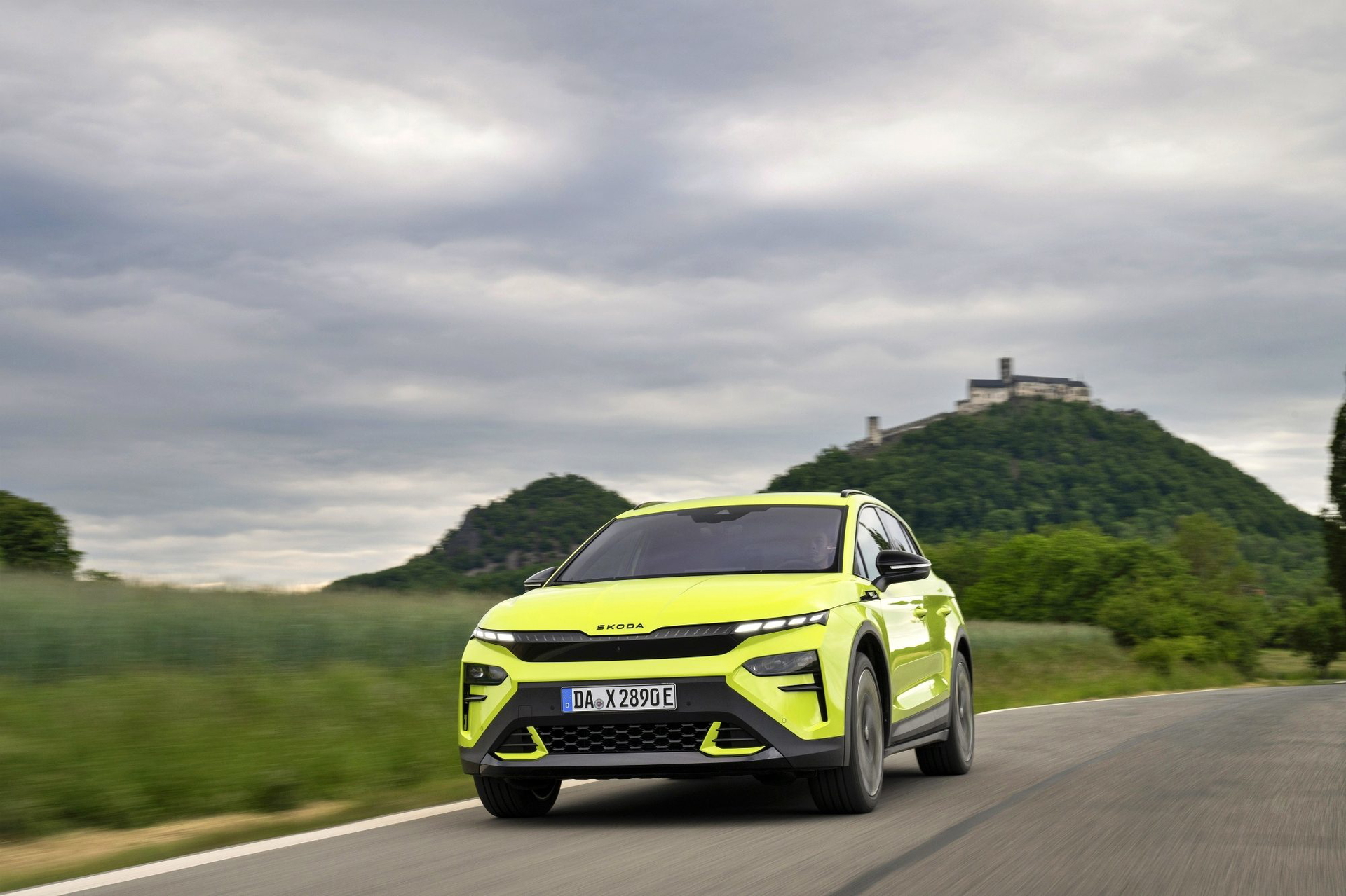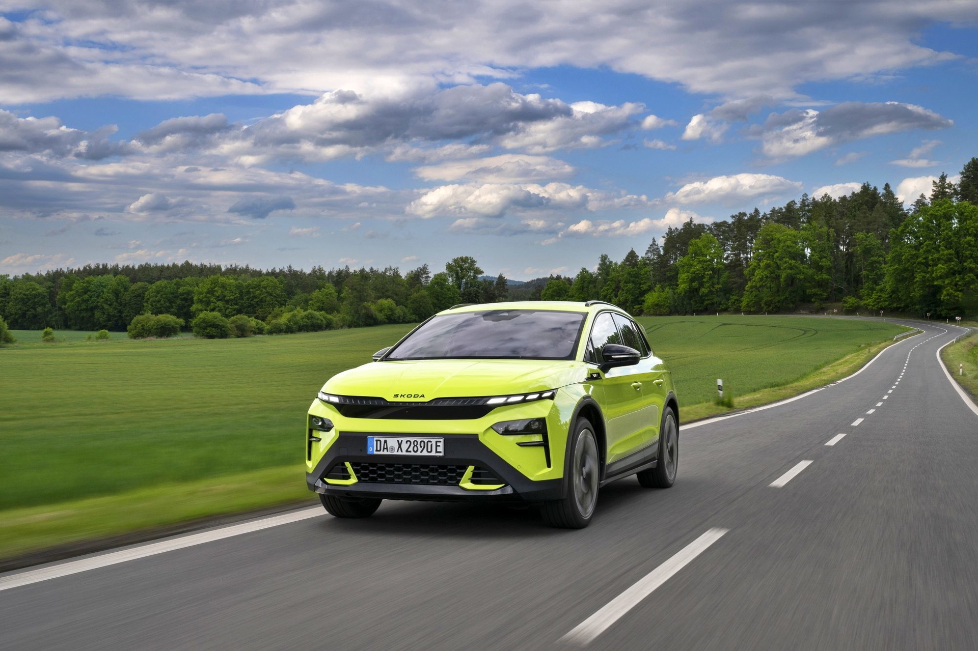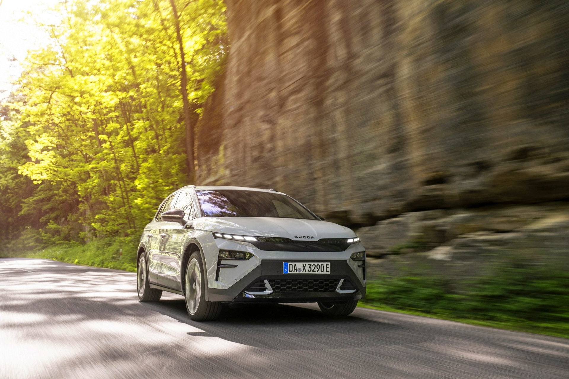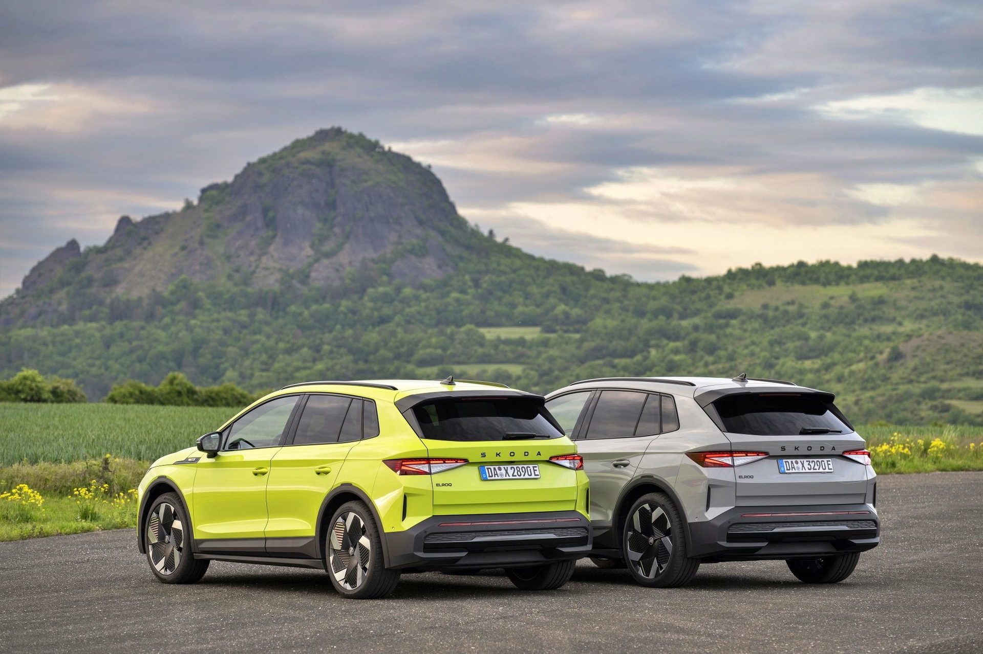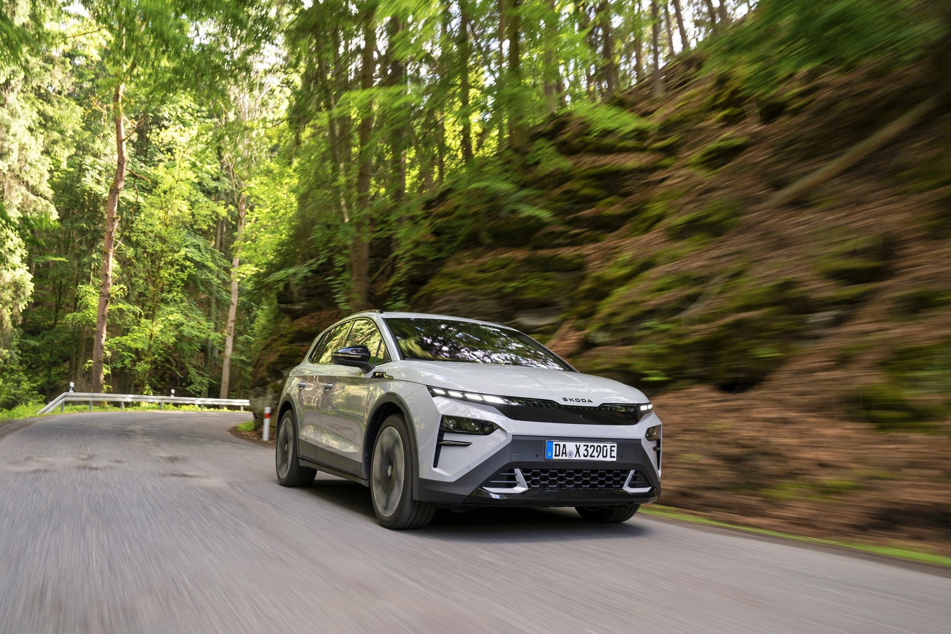 El lenguaje de diseño «Modern Solid» del Elroq se combina en este modelo con detalles en color negro, como las letras SKODA en el capó y el portón del maletero, las carcasas de los retrovisores o las barras de techo.