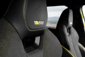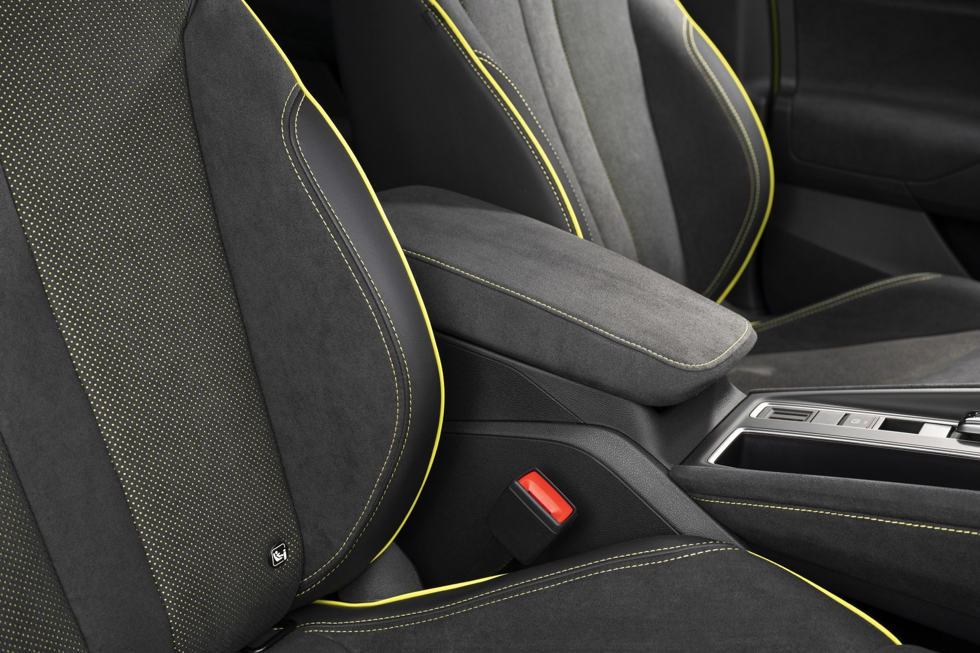 El interior tiene todavía más carácter deportivo. Al entrar, te reciben unos asientos tipo semibaquet con tapicería mixta de piel, tela y microfibra Suedia, un material parecido al ante. En cierto modo parece un superdeportivo porque tiene microfibra por todos lados: en el reposabrazos que hay entre los asientos, en la consola central, en la parte superior del salpicadero, en los paneles de las puertas… Queda muy deportivo, aunque no estoy seguro de cómo aguantará el paso del tiempo en las zonas más expuestas al roce.