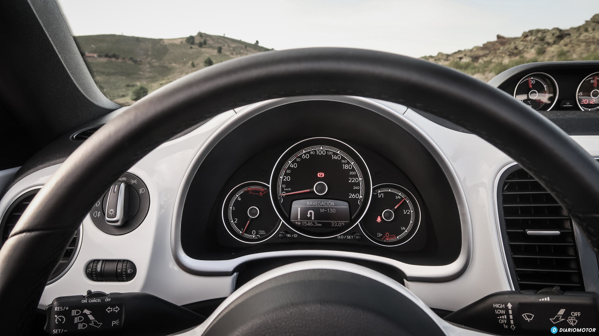 Bajo el capó de nuestro Volkswagen Beetle late una mecánica 2.0 TDI de 150 caballos que se hace notar nada más girar la llave con un toc toc toc toc que ensombrece ligeramente la experiencia descapotados… pero que a cambio nos brida un consumo de poco más de 6 l / 100 km, circulando descapotados, con tres ocupantes y equipaje, con cruceros altos, callejeando… un consumo, en definitiva, totalmente parejo al que podríamos tener en condiciones de lo más normal, en el día a día.