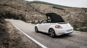 Su dirección goza de un buen tacto, con un buen peso y bien guiada, de sus frenos, con una conducción normal, que es la que le podemos exigir a este Beetle, no presentan tacha alguna y sólo nos separan unos pocos segundos, presionando un botón que hay en la parte central del marco delantero, para disfrutar de este Beetle descapotados.