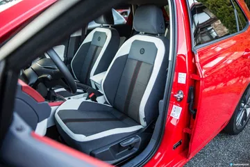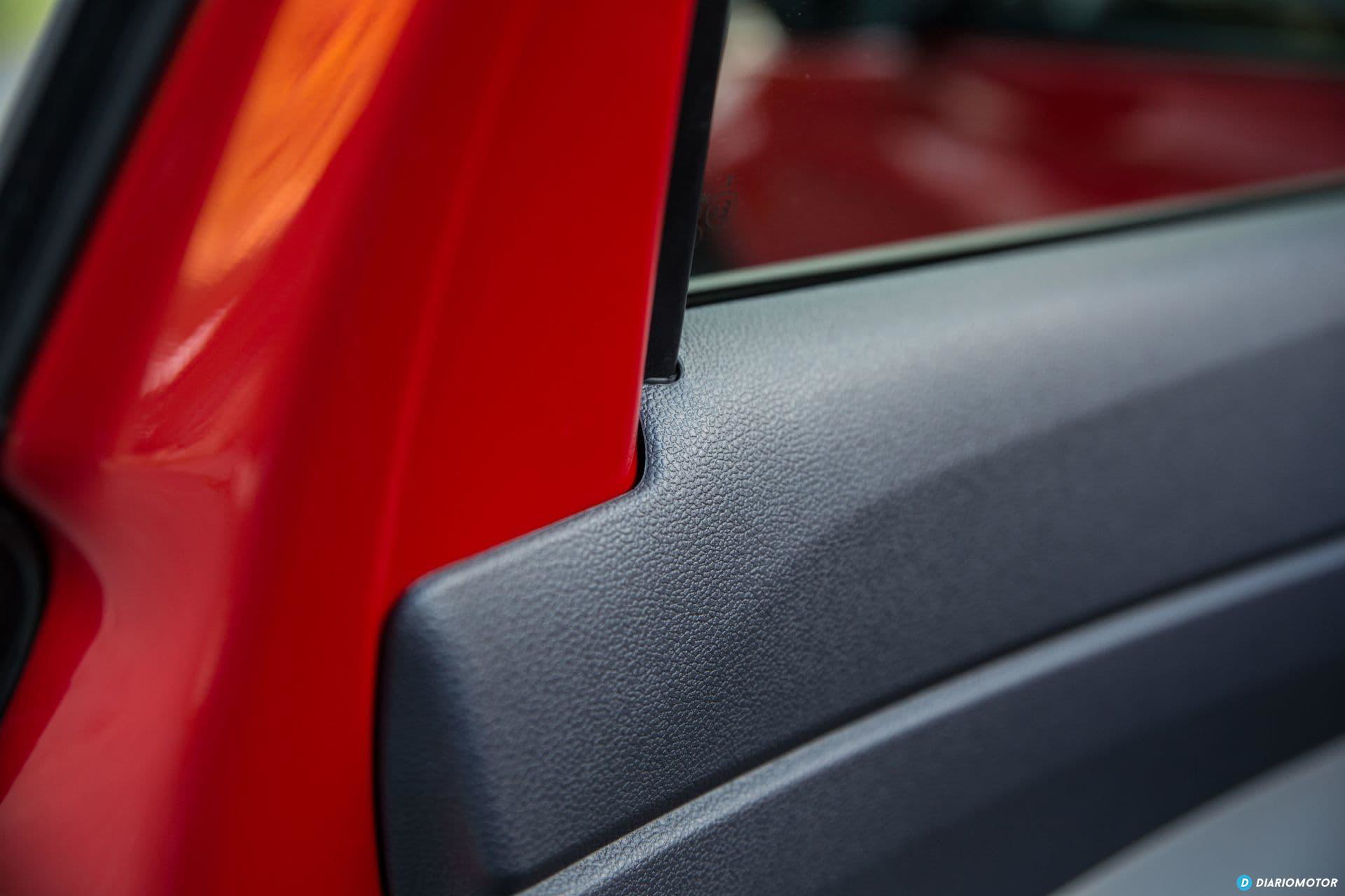 Aunque el coche es 7 mm más bajo que su predecesor, los pasajeros se sientan más abajo, aumentando el espacio para la cabeza, especialmente en las plazas traseras. A nivel de acabados y terminaciones, es un utilitario que convence. Desde luego, está a un nivel superior al SEAT Ibiza, que carece de un solo plástico acolchado en todo el habitáculo. Me gustan los ajustes del salpicadero, cubierto por un plástico gomoso de muy buen tacto. Aunque los ajustes son buenos, nos gustaría que los marcos de las puertas se hubieran tapizados, especialmente en las puertas traseras, que dejan a la vista mucha chapa (ver foto).