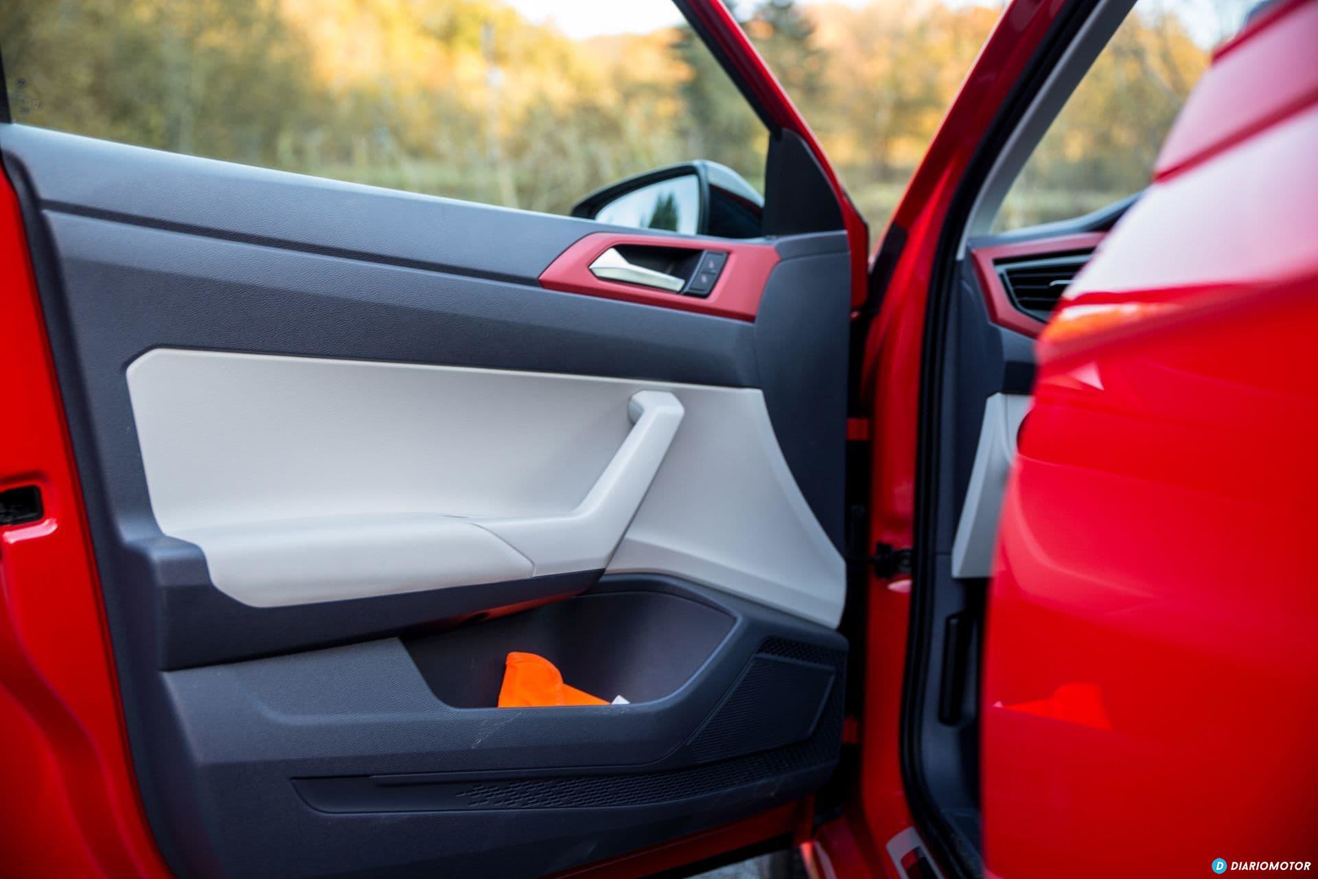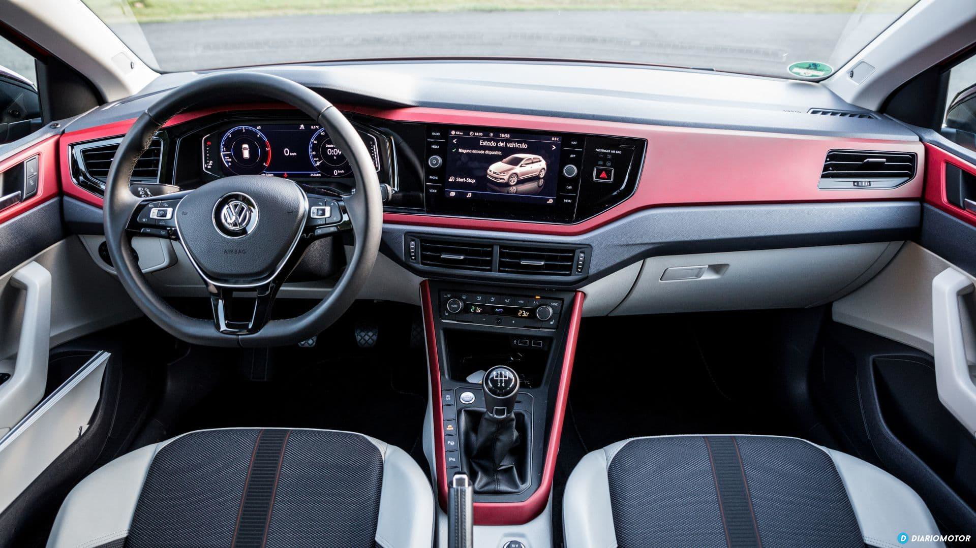 He probado dos unidades diferentes y en ambas no había diferencia de ajustes. En la unidad Beats – la de las fotografías – el color rojo y blanco del salpicadero hacía un bonito contraste con los asientos, aportando una nota de color a un interior que en otras versiones peca de ser sobrio. Las puertas y la consola central están forradas en plásticos duros, de tacto firme y buena calidad aparente. A nivel de ergonomía y controles, el Volkswagen Polo recorta distancias con el Golf, equipando por ejemplo la segunda generación de la instrumentación Digital Cockpit, compuesta por una pantalla TFT de 10,25″.