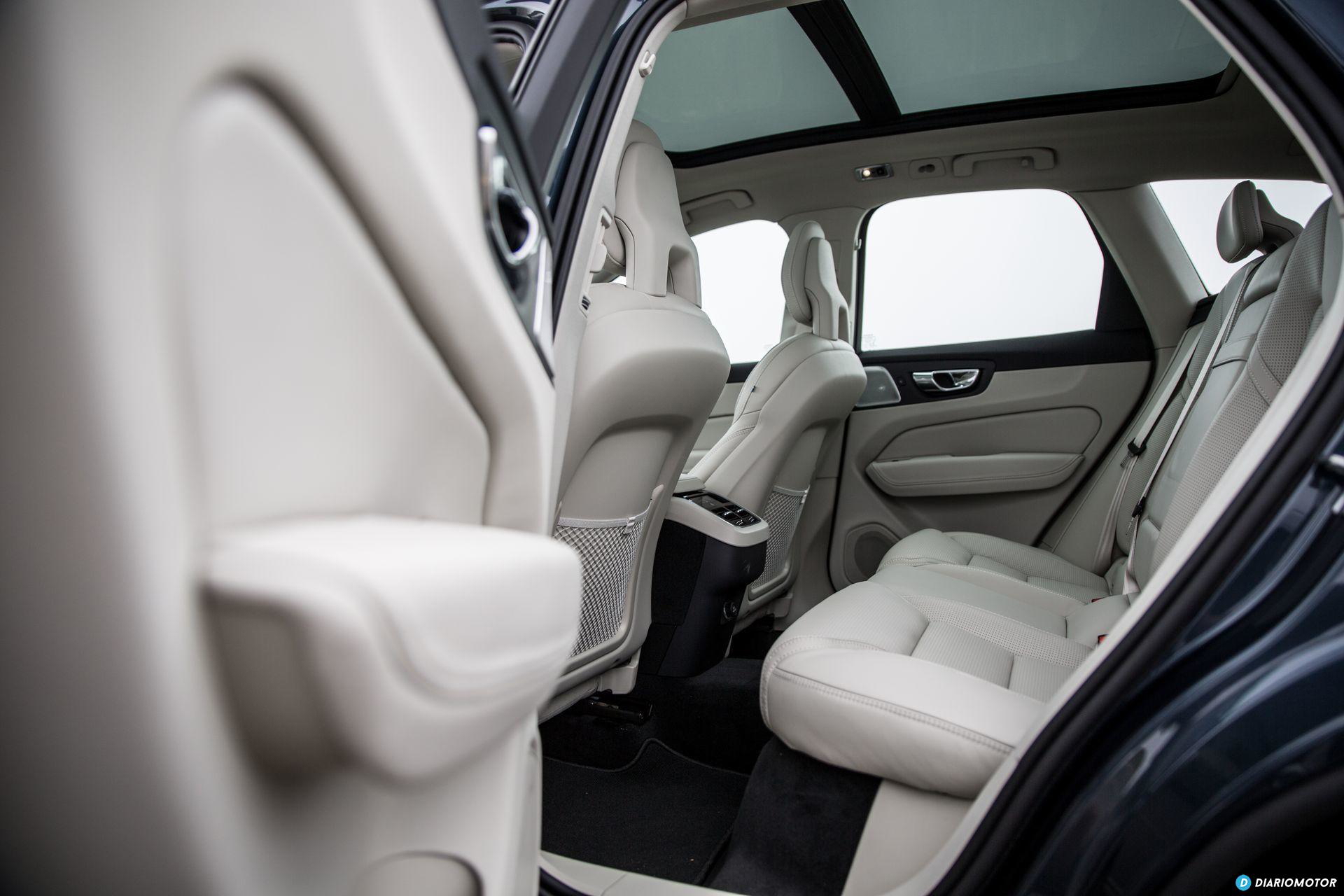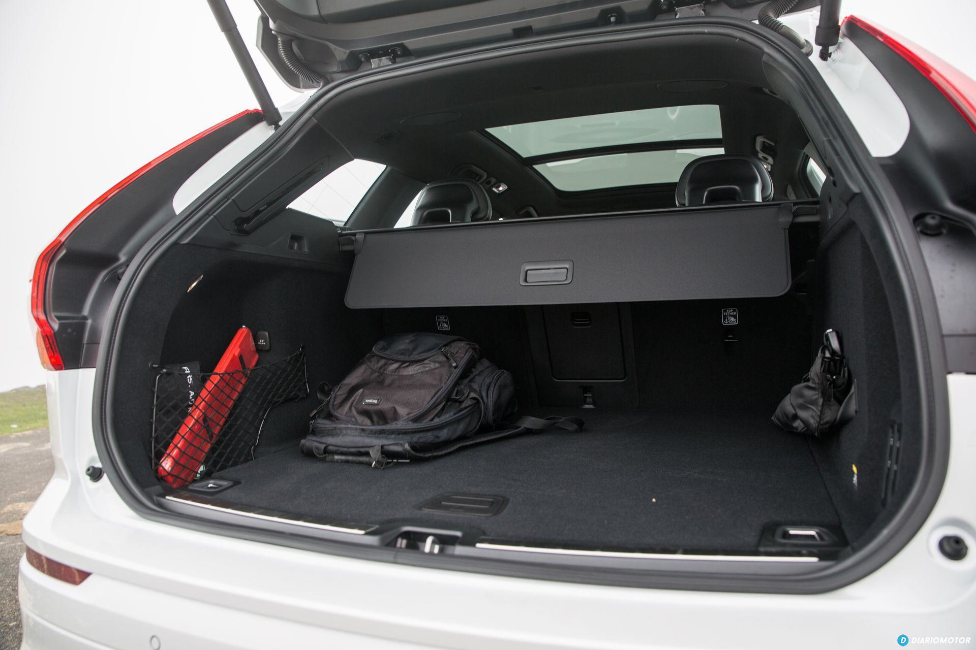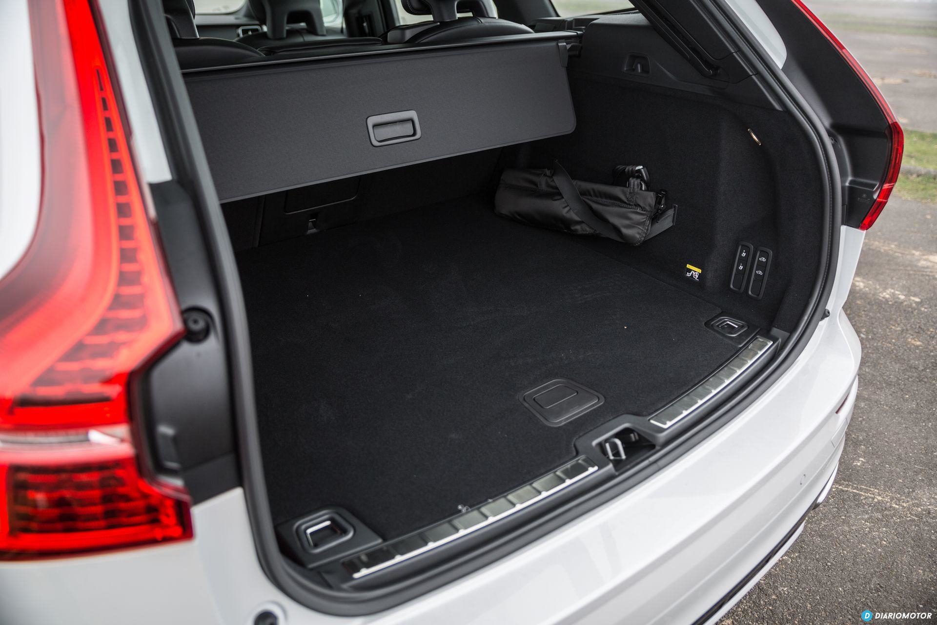 Tras haber probado tanto las plazas delanteras como las traseras, puedo certificar que son amplias y cómodas en ambos casos. La principal queja se centra en la plaza central trasera, que debe lidiar con un túnel central muy prominente, y una banqueta más dura. Es además una plaza estrecha, sólo apta para viajes cortos. El maletero del Volvo XC60 cubica 505 litros – podemos cargar objetos de hasta 175 cm de largo abatiendo los asientos traseros – incluyendo el espacio disponible bajo el piso. En nuestro caso este espacio estaba parcialmente ocupado por una rueda de repuesto tipo galleta y los dos depósitos de la suspensión neumática.