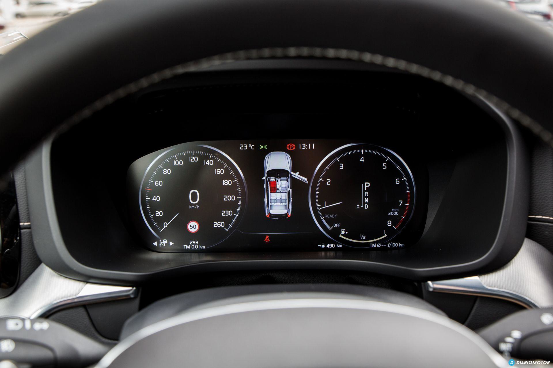 En el interior del coche Volvo nos demuestra que ha sabido trasladar el buen hacer de su serie 90 a un formato más pequeño. Es un habitáculo de diseño similar al de sus hermanos mayores, con una instrumentación digital de 12,3 pulgadas – de serie en las versiones Inscription y R-Design – y una pantalla central en formato tablet de 9 pulgadas, asociada al sistema Sensus de infotainment. Me quedo con las excelentes calidades y terminaciones, así como las inserciones en madera natural de la versión Inscription. Un diseño minimalista, escandinavo, sin estridencias y que presume de tener sólamente 9 botones en todo el salpicadero.