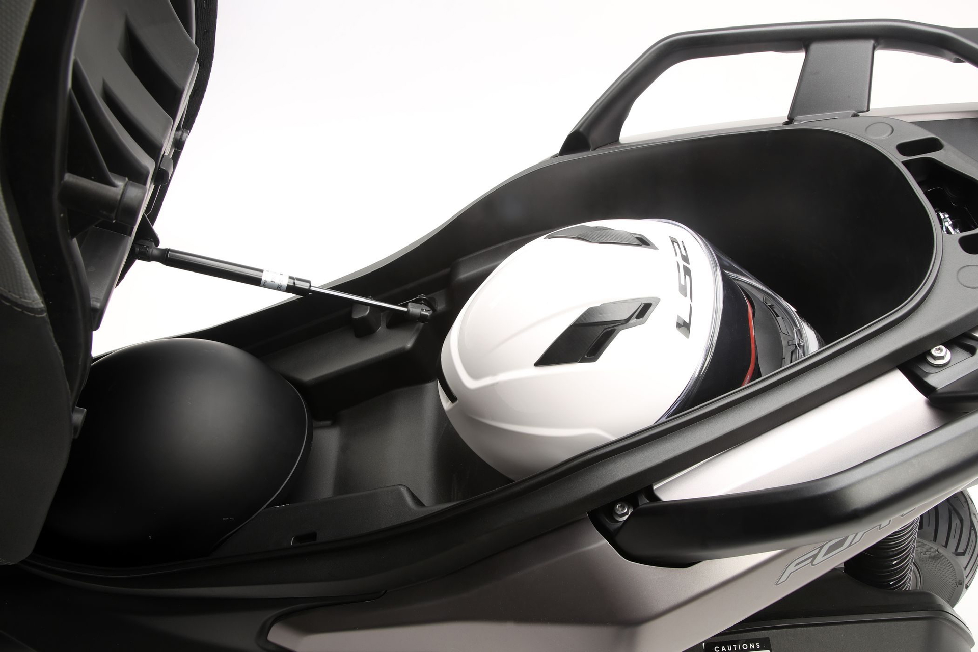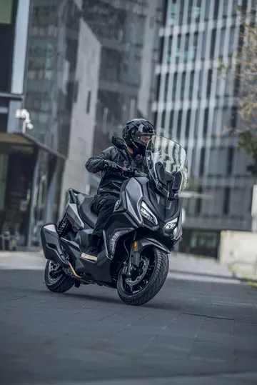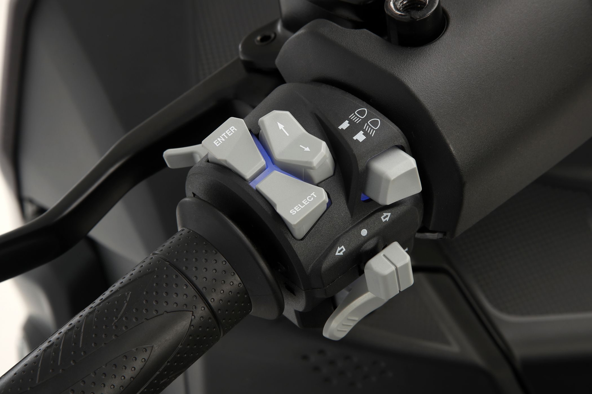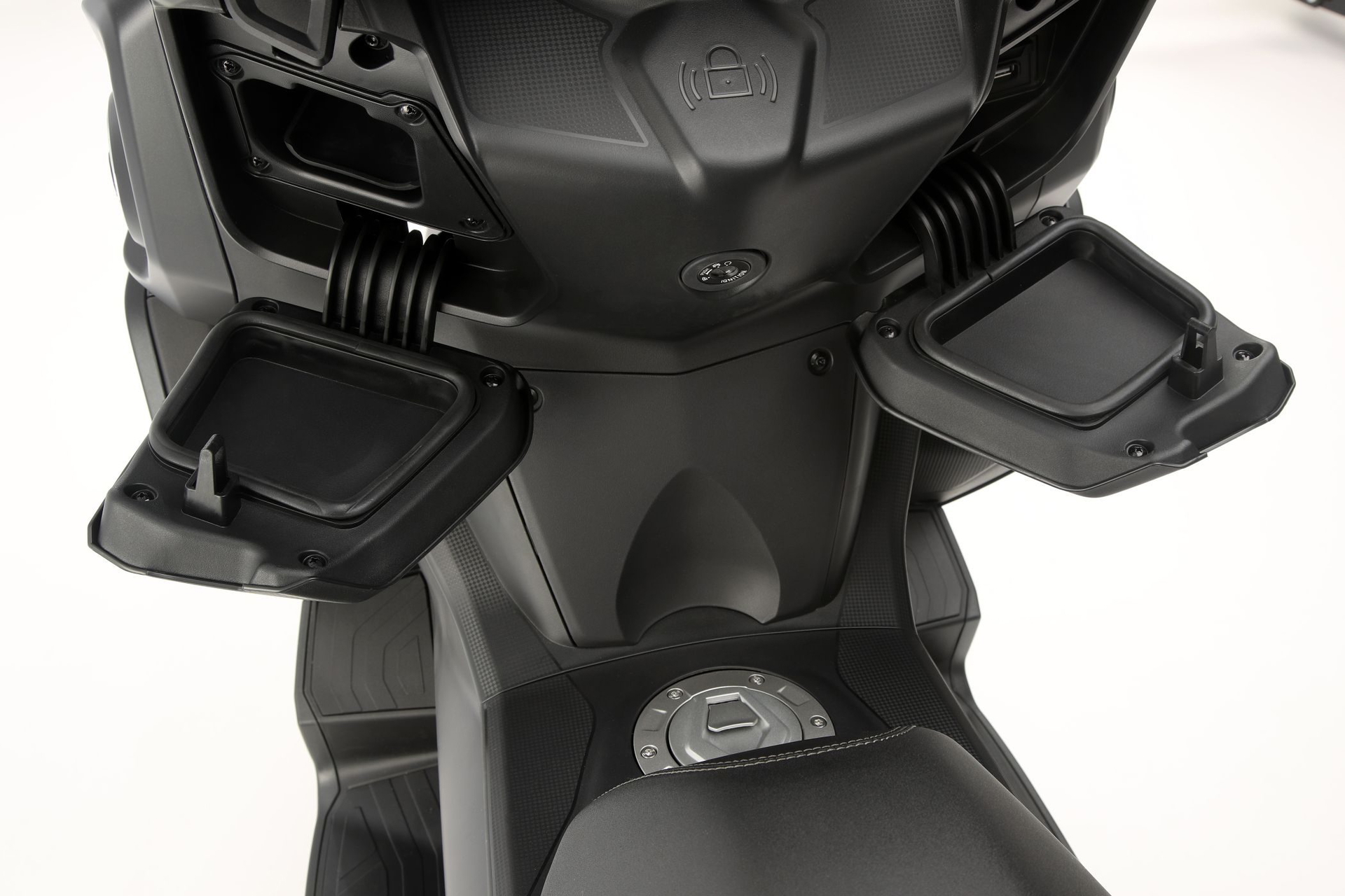 Otros elementos de serie son la instrumentación digital configurable con conectividad móvil, cúpula regulable en altura, amplio hueco bajo el asiento para dos cascos, guantera tras el escudo, estriberas abatibles, pata lateral y caballete central, piñas retroiluminadas, sistema de llave inteligente, etc.