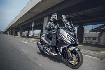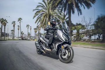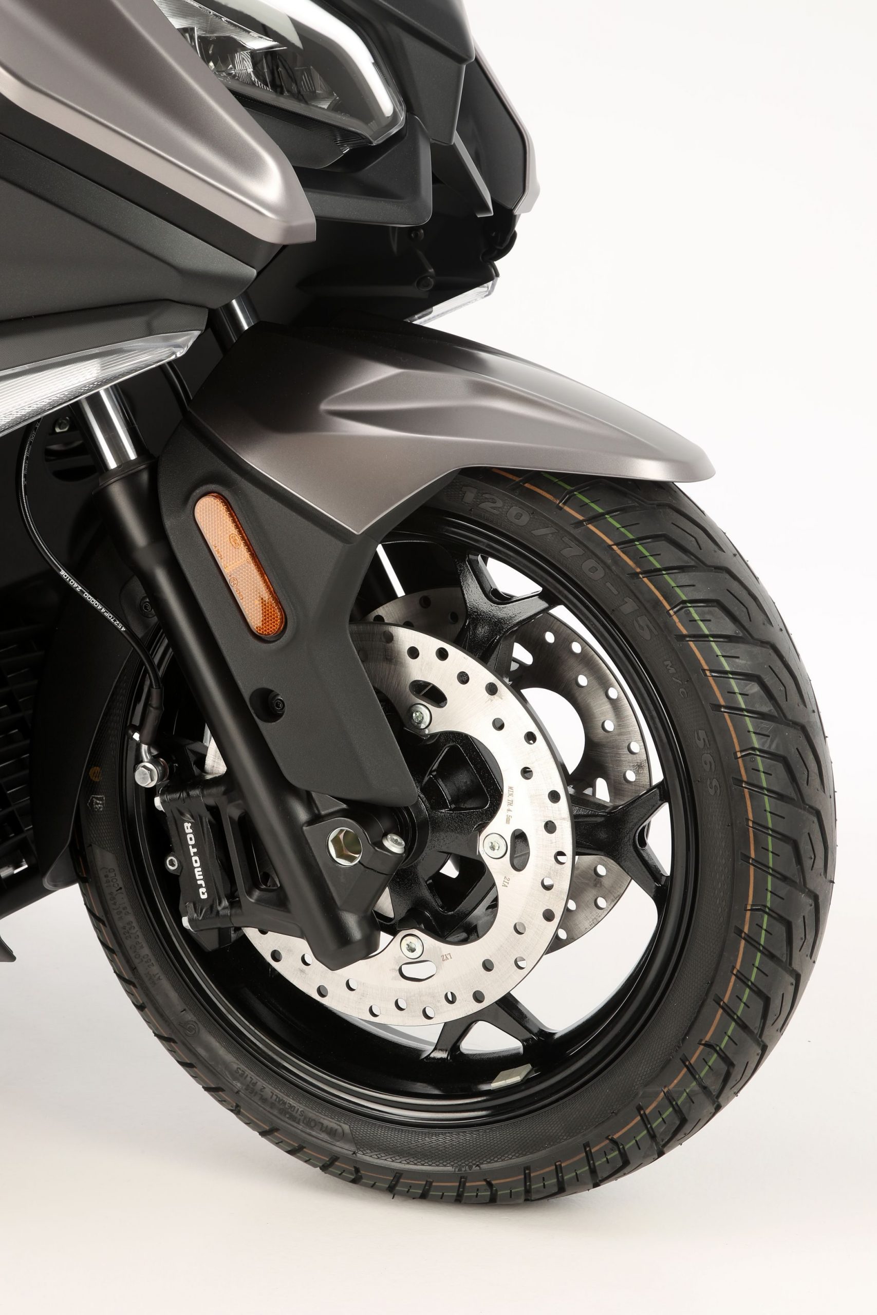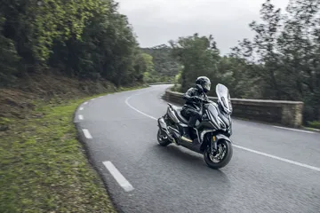 Lo que no sale tan bien parado es el peso del conjunto que con 213 kg no será apropiado para todas las tallas. Además es una scooter larga con la que te costará ratonear entre los coches. Eso sí, en carretera podrás presumir de protección al viento y un gran confort de marcha gracias a su generoso asiento.