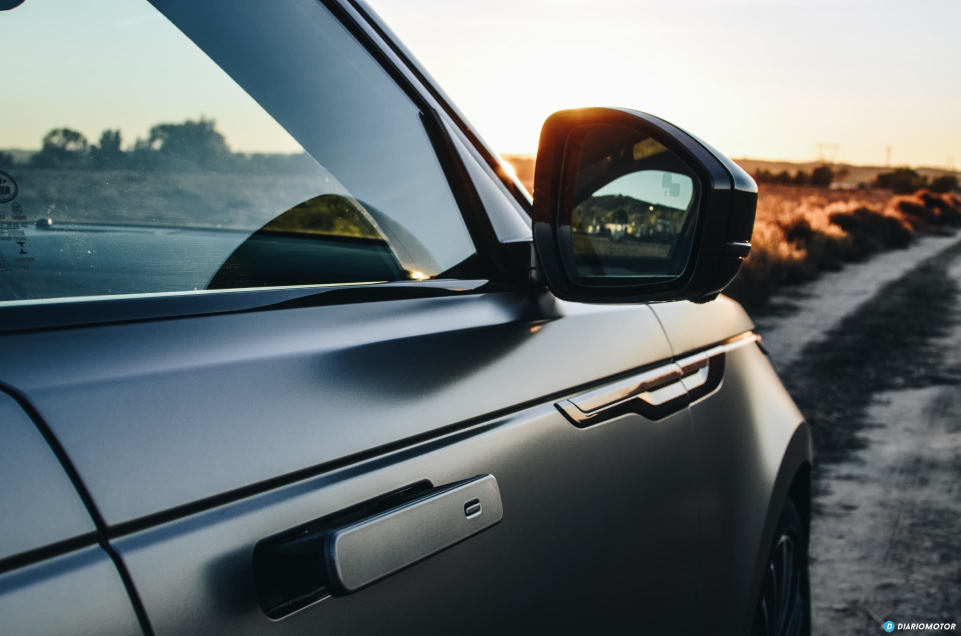 Cada porción de la carrocería del Range Rover destila elegancia y estilo y la vista de su lateral es hipnótica, con una larga superficie limpia, de alta cintura y estrecha superficie acristalada, sobresaliendo en ese agradable diseño unos tiradores que se esconden en la carrocería en un “baile” que no hace más que insinuar, una vez más, que este Range Rover Velar es un coche especial, muy especial.