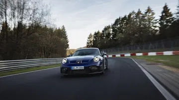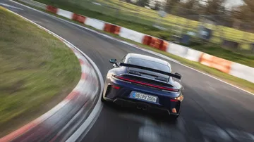 Esto deja patente la evolución del coche a nivel de chasis y aerodinámica. Otro dato más: el GT3 manual está a solo 10 segundos de todo un Porsche 911 GT3 RS, un coche con profundas modificaciones dinámicas y aerodinámicas. En verdad, cualquier tiempo por debajo de los siete minutos es absolutamente sensacional para un coche de calle, y era una quimera hace pocos años. El récord del Porsche 911 GT3 manual fue firmado por Jörg Bergmeister, que hizo uso del sistema de punta-tacón automático del deportivo alemán.