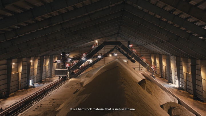 La espodumena se encuentra en roca dura (pegmatitas), por eso lo primero que se hace es triturarla. Después se concentra para quedarse con las partes ricas en litio, y posteriormente se somete a un tratamiento térmico en un horno y un enfriador para transformar su estructura cristalina.