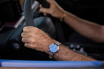 La esfera está disponible en varios colores, siendo el azul el más deseado bajo mi punto de vista, evocando a aquellos Delta con librea de Martini Racing. El cuerpo del reloj tiene solo 10,45 mm de grosor – menos que un Rolex Submariner – y su movimiento automático es un calibre Selita SW200-1 11½ con 38 horas de reserva de marcha. Sus agujas y marcas horarias están pintadas con Superluminova para garantizar una buena visibilidad en la oscuridad. El reloj se vende tanto con correa metálica como con correa de cuero.