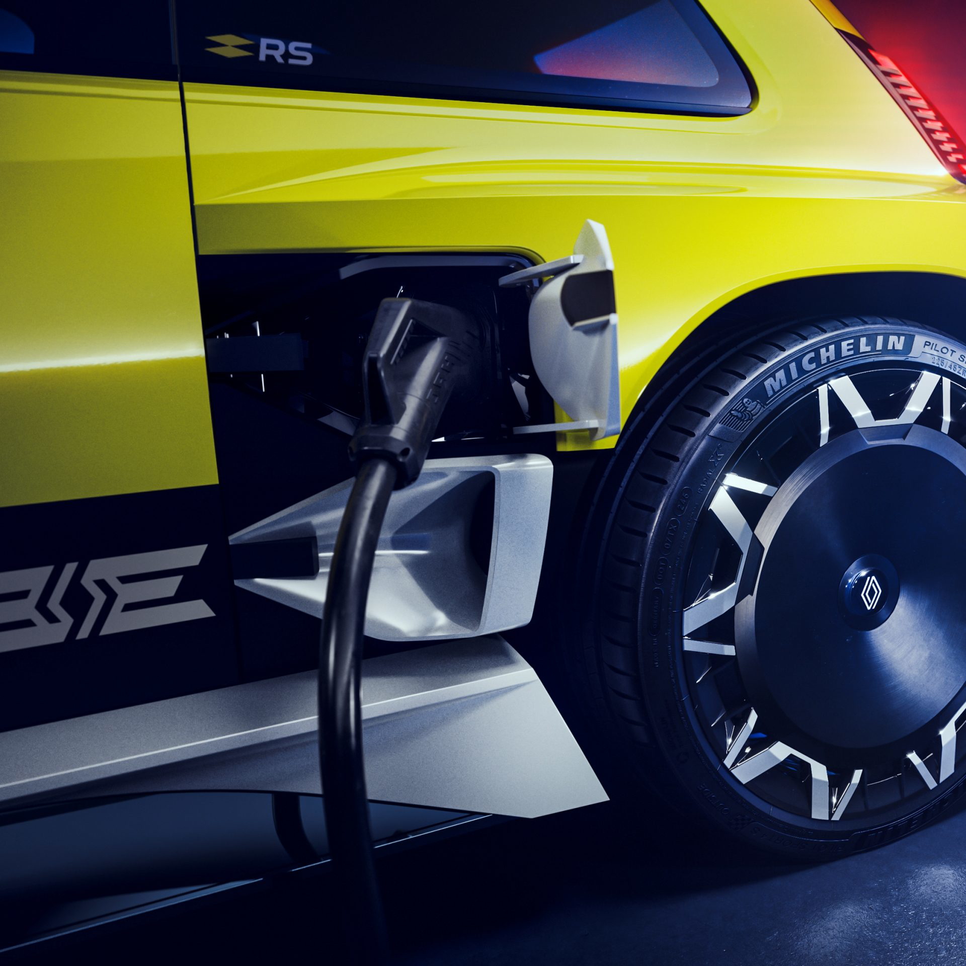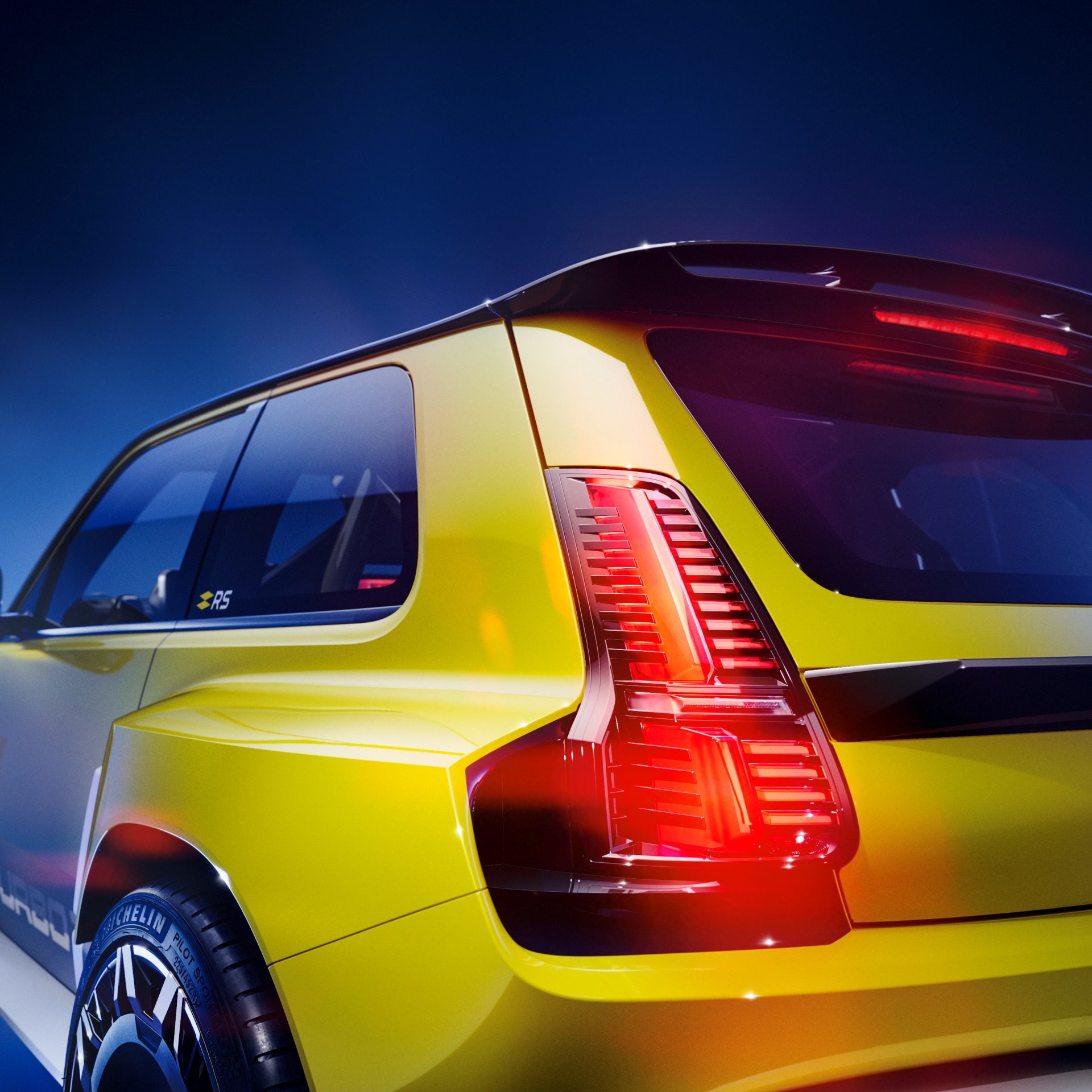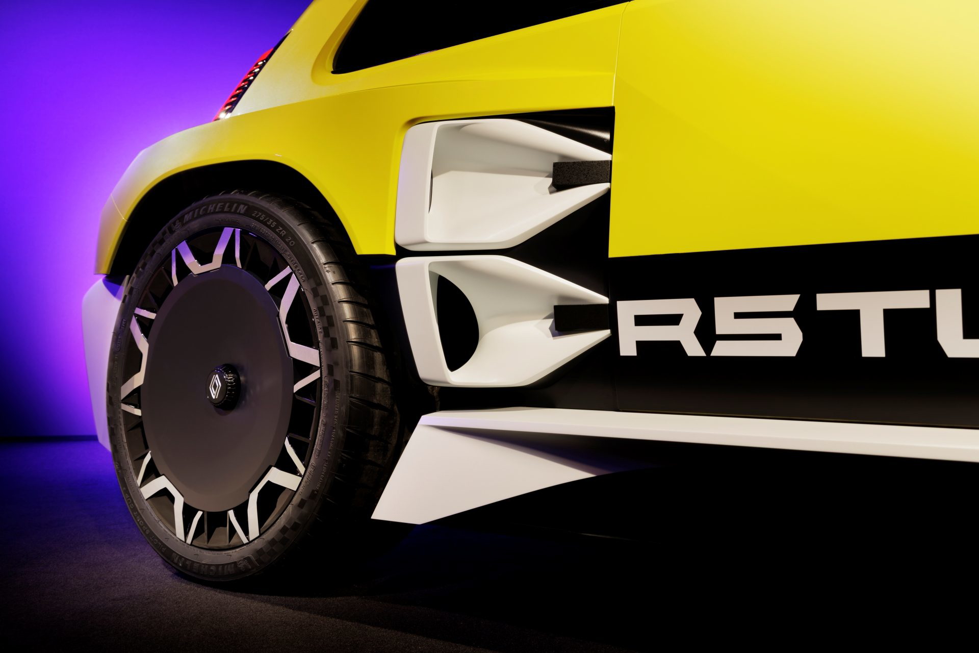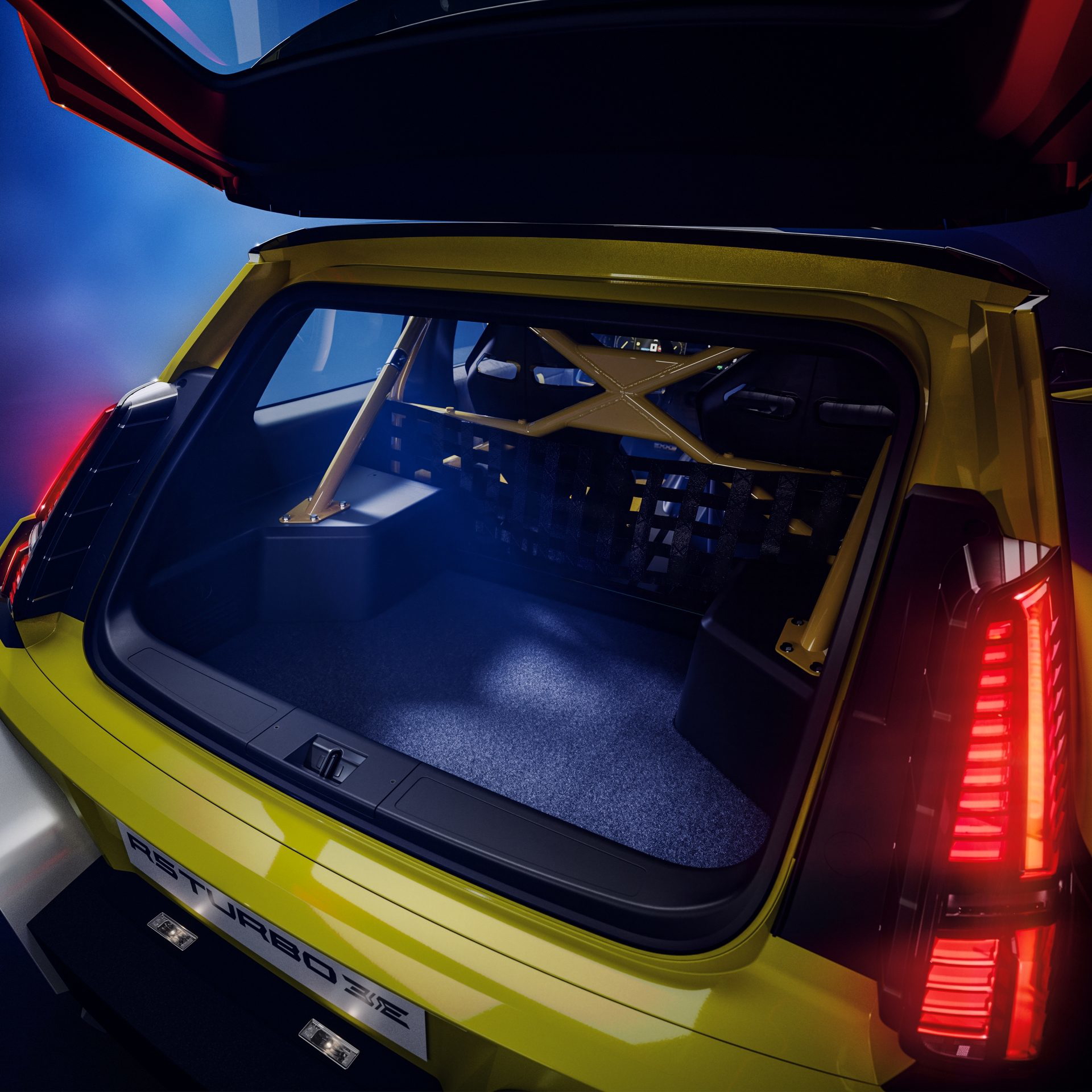 El Turbo 3E es la interpretación moderna de los Renault 5 Turbo y Turbo 2 del siglo pasado. Evoca ese diseño ancho que les hizo ganarse cariñosamente el apelativo de «culo gordo». En el Turbo 3E se lleva al extremo: es casi 26 centímetros más ancho que un Renault 5 eléctrico convencional.
