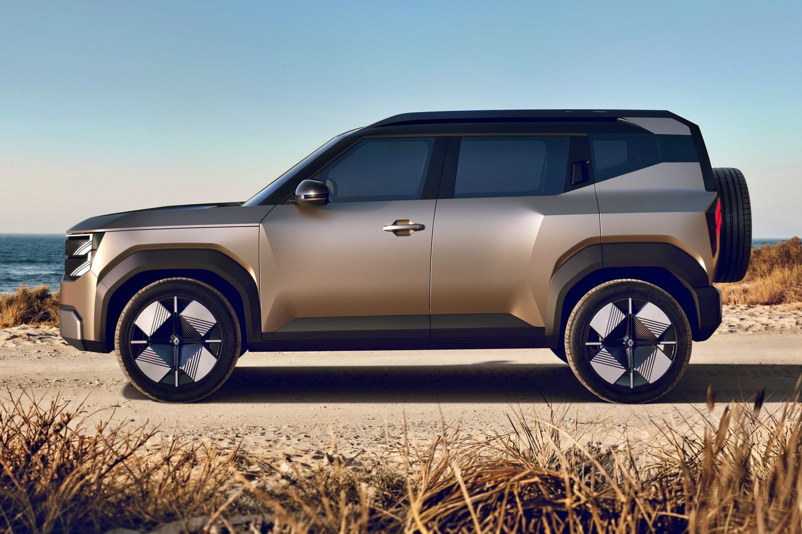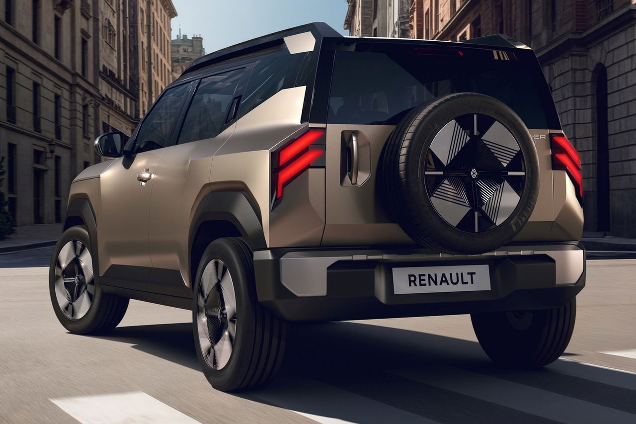 Hay mucha tela que cortar con este nuevo Bridger, pero empecemos por su exterior, que es, sin duda, el elefante en la habitación. Ranault dice que medirá menos de 4 metros de largo (probablemente sin contar con la rueda de repuesto), pero que aun así contará con un maletero superior a los 400 litros. Además, como mencionado, tendrá una altura libre al suelo de 20 centímetros, lo que junto a una carrocería de estilo cúbico, líneas de tensión que se alargan de un extremo a otro y superficies lisas y limpias, hacen que parezca un verdadero Land Rover Defender en formato asequible.