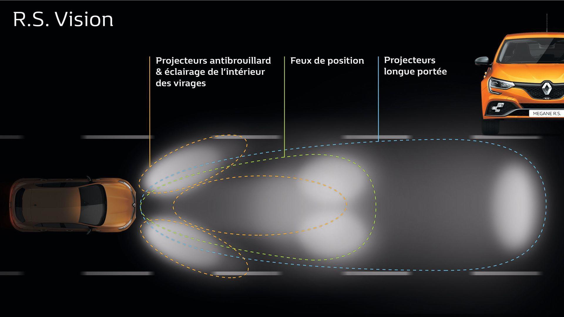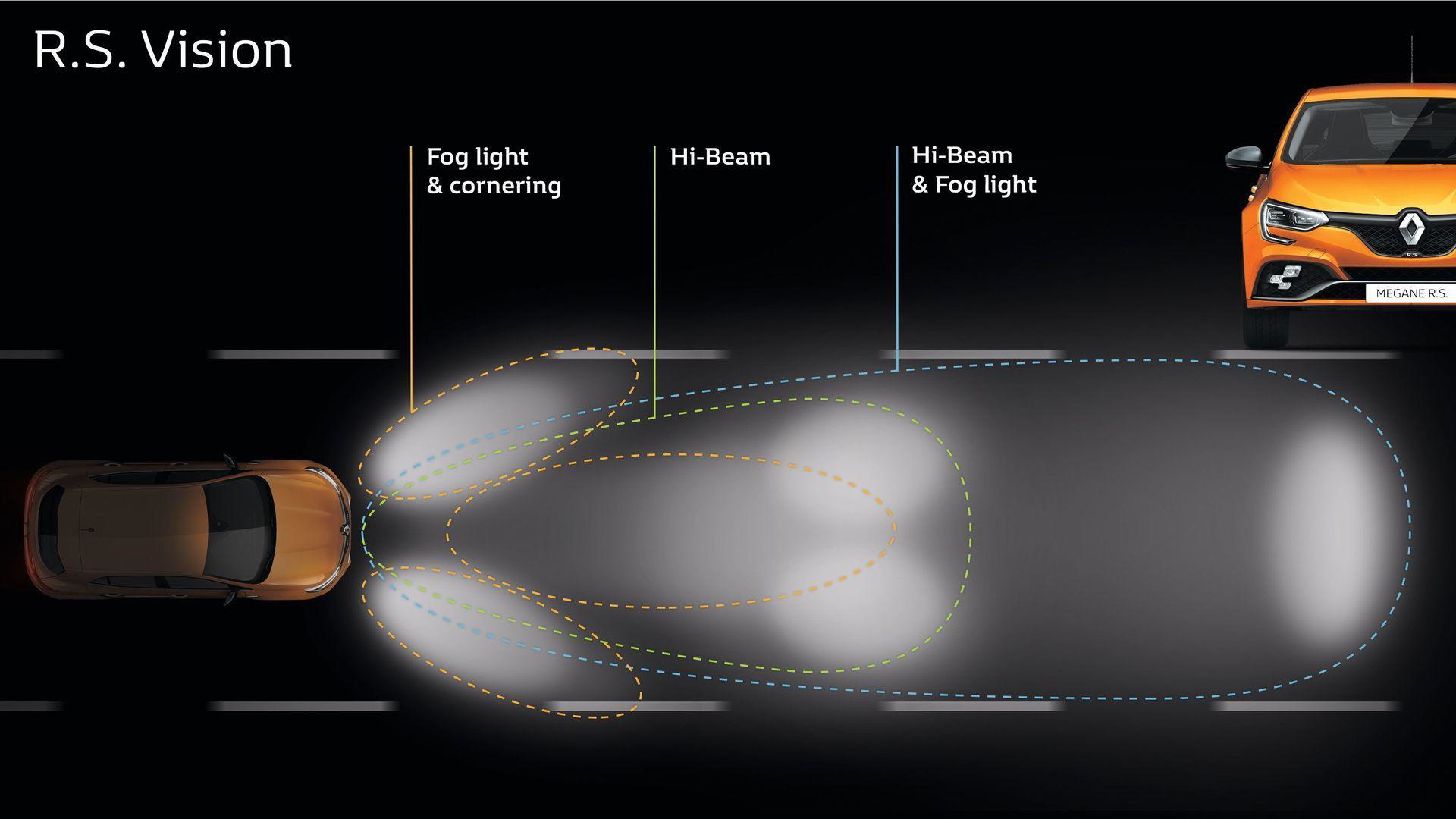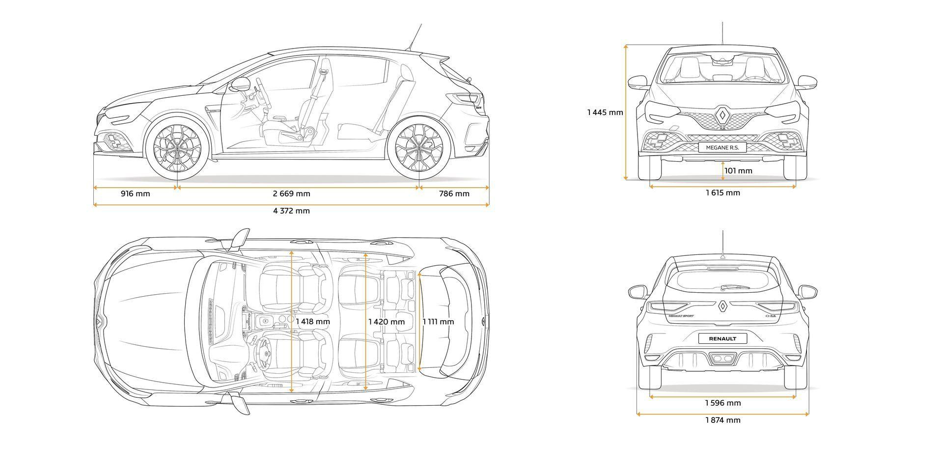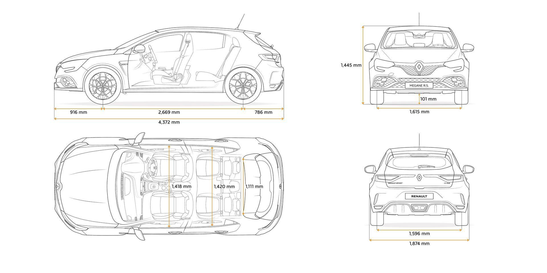 El nuevo Renault Mégane RS se presenta tras sucesivas filtraciones, pero no por ello resulta menos impresionante. En su frontal nos encontramos una calandra de nido de abeja, las siglas RS situadas justo bajo el logotipo de Renault y los ya característicos antinieblas en forma de bandera de cuadros. Una moldura plateada nos recuerda a los últimos Mégane RS de la pasada generación. Sus pasos de rueda han sido ensanchados y dotados de enormes branquias de refrigeración – no de adorno. Llantas de diseño agresivo y hasta 19 pulgadas de diámetro ocupan una posición destacada en su perfil lateral.