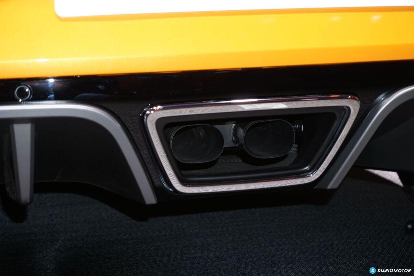Estas llantas de 19 pulgadas están asociadas al chasis Cup y están envueltas en neumáticos de 245 mm de sección, siendo las llantas de serie de 18 pulgadas, con neumáticos deportivos de 235 mm de ancho. Me gusta cómo ha Renault Sport resuelto la zaga del Mégane Sport. Lo ha hecho con un enorme difusor funcional, en cuyo centro encontramos una única salida de escape de enormes dimensiones. El portón del maletero está coronado por un spoiler de dimensiones generosas. En el habitáculo, Renault ha dotado al Mégane de asientos deportivos forrados en Alcantara, un nuevo pedalier y una palanca de cambios con detalles en color rojo