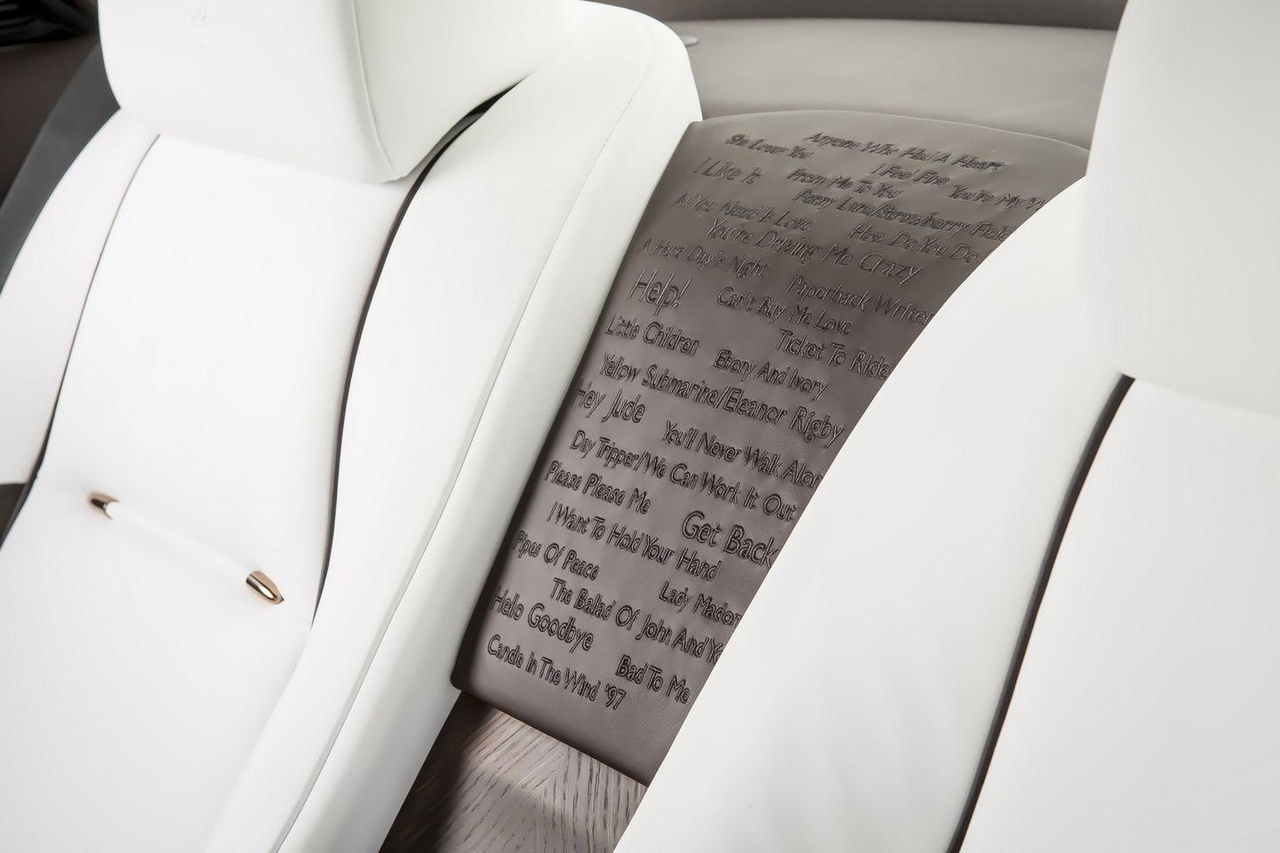 En el capó del Wraith se encuentran detalles de la portada del disco y en su interior, motivos como los pájaros volando o letras de algunas canciones. Será vendido para obtener fondos para el Teenage Cancer Trust, del que Roger Daltrey es uno de los abanderados. Otra figura clave de la música británica es Sir Ray Davies, frontman de The Kinks. También hay un Wraith en su honor, con el nombre de la banda y su firma en detalles del interior y el exterior del coche. Rolls-Royce también rinde homenaje a Sir George Martin. Fue el histórico productor de los Beatles, y en palabras de Paul McCartney, el quinto Beatle.