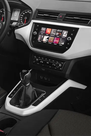 La calidad percibida en un SEAT León, a nuestro juicio, es superior de la presente al subir a bordo de un SEAT Arona. Aquí también es cierto que hemos de tener muy en cuenta que el Arona ha tomado un rumbo de diseño interior diferente al de su hermano mayor. En el Arona nos encontramos con acabados muy visuales y llamativos, como algunos de los coloridos que hay disponibles para la zona central del salpicadero, si bien es cierto ha sido revestida de un material sencillo, plástico duro, salvo en versiones que como las FR recurren a un material mullido con una costura visible en rojo.