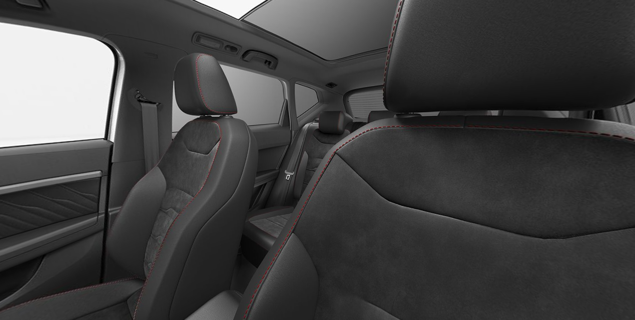Los interesados en el nuevo SEAT Ateca FR 2026 podrán elegir pocas opciones. Las más destacables son el color para la carrocería (azul, blanco, negro, gris o rojo), llantas de aleación de diseño específico, rueda de emergencia, techo solar panorámico doble con cortinilla eléctrica y el pack techo interior negro que añade todo el guarnecido superior en color oscuro.
