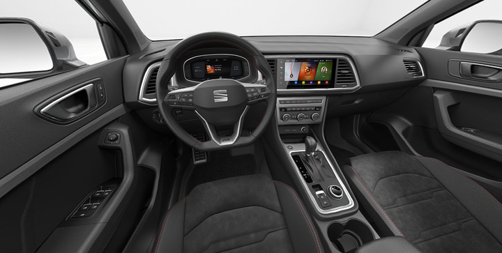 Los interesados en el nuevo SEAT Ateca FR 2026 podrán elegir pocas opciones. Las más destacables son el color para la carrocería (azul, blanco, negro, gris o rojo), llantas de aleación de diseño específico, rueda de emergencia, techo solar panorámico doble con cortinilla eléctrica y el pack techo interior negro que añade todo el guarnecido superior en color oscuro.