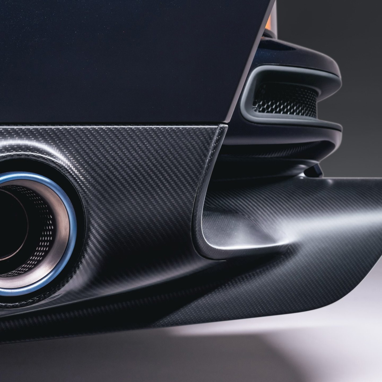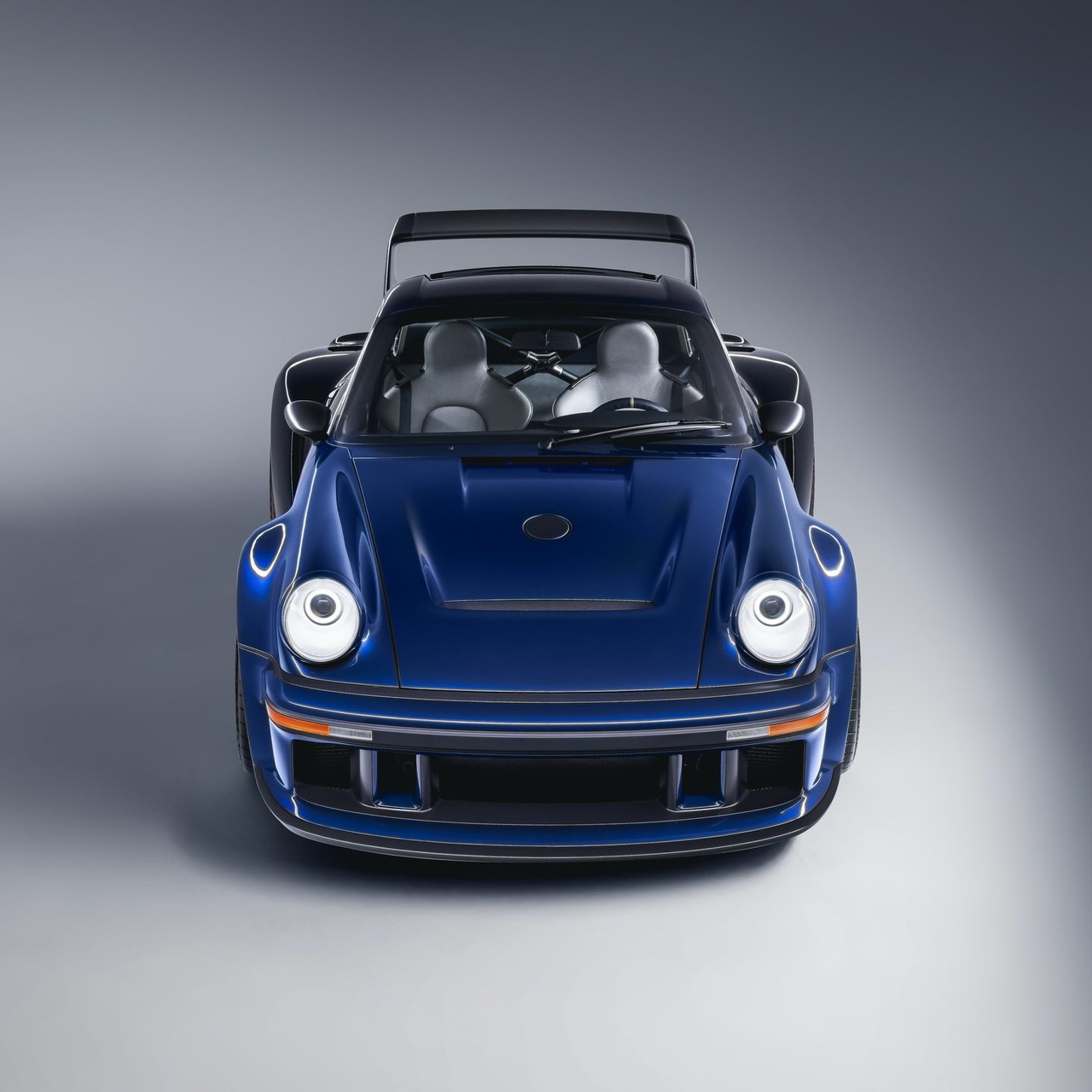 La carrocería fabricada en fibra de carbono se viste en este caso con un tono conocido como Fantasia Blue desde el frontal y poco a poco va en transición hacia un color más oscuro, casi como si Singer hubiera buscado representar a la perfección sobre el lienzo lo que caracterizaba a ese 934.5 original, que era la unión de dos mundos, desde el frontal tradicional con la imagen característica de los ‘bug eyes’ de Porsche, hasta una trasera esculpida en el túnel del viento.