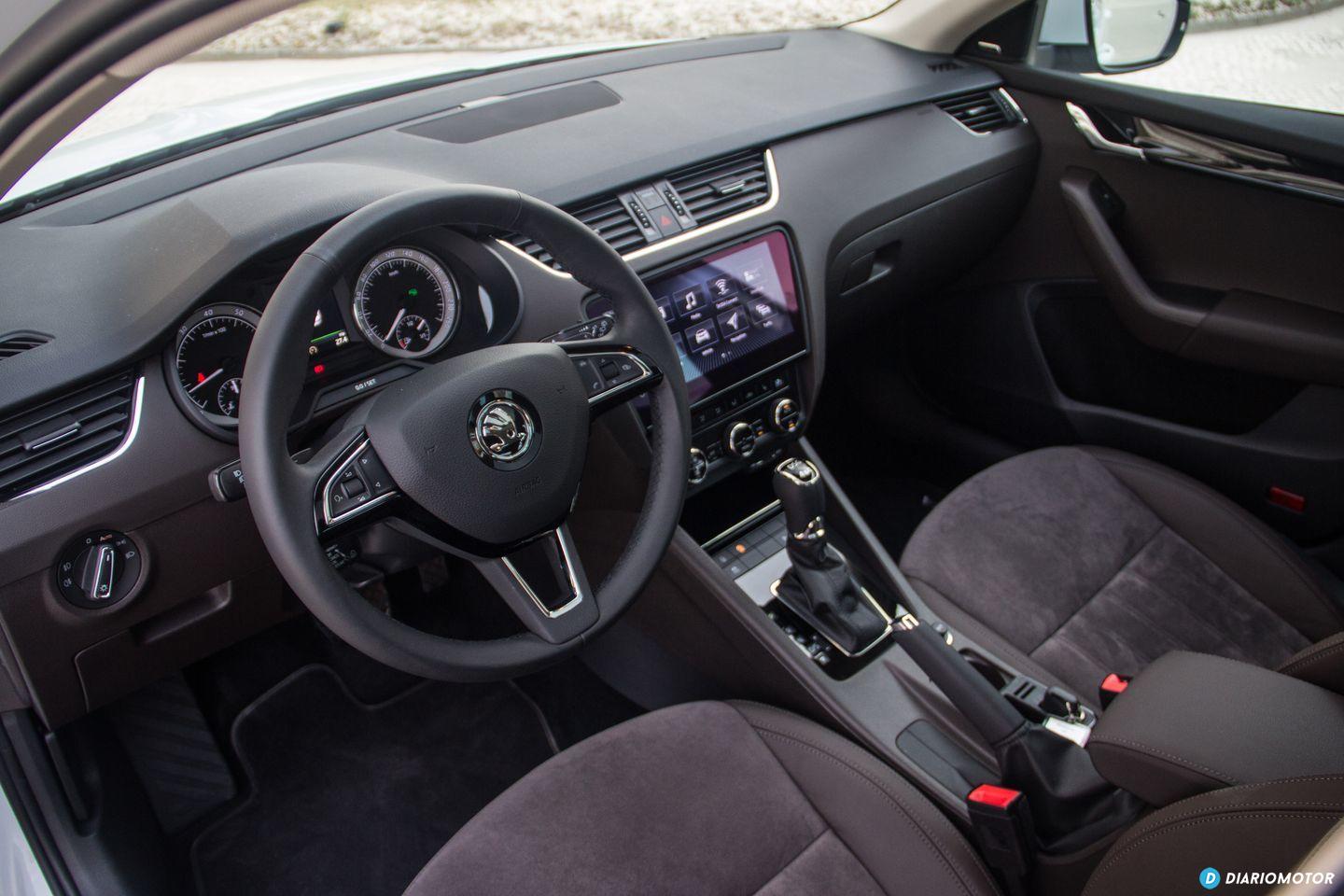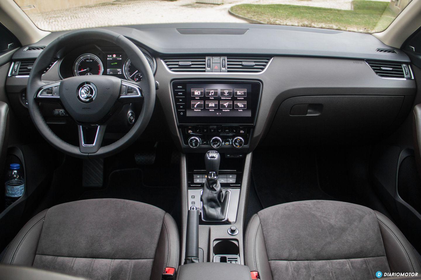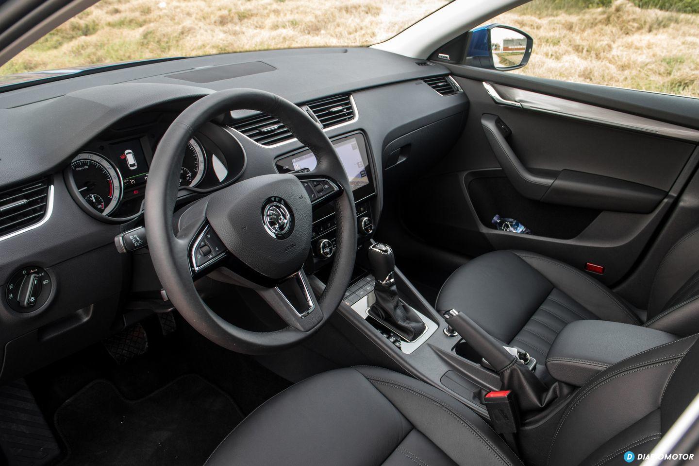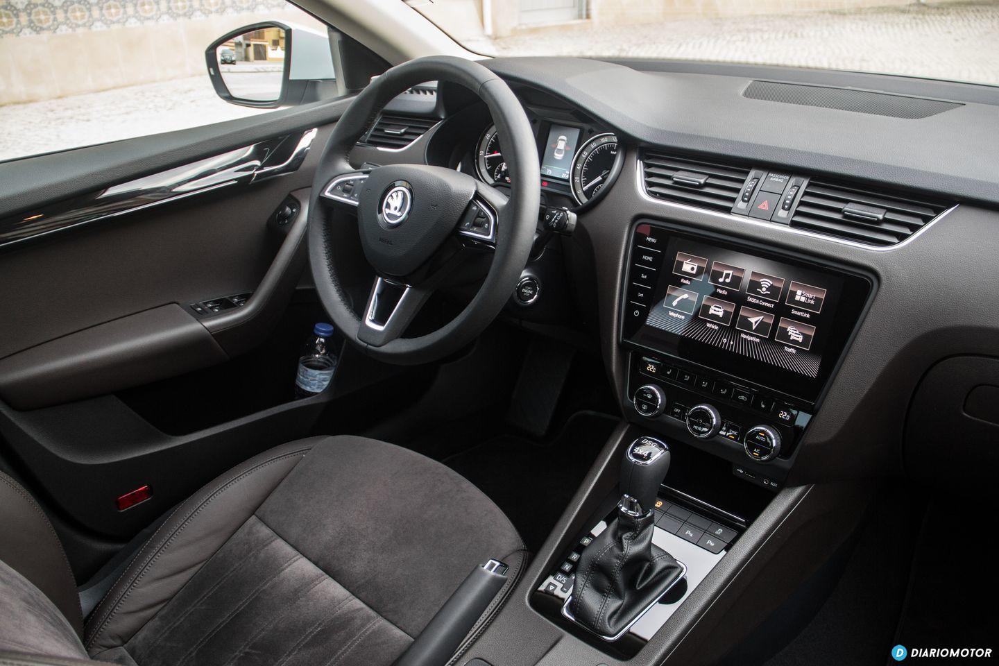 3. Un interior sobrio y estándar, pero más tecnológico. El diseño interior del Skoda Octavia no consigue emocionarnos. Está muy bien construido y los ajustes tienen una gran calidad – está al nivel de un Volkswagen, sin duda alguna – pero peca de ser excesivamente sobrio. Con este lavado de cara podremos escoger entre nuevas combinaciones de colores y nuevos tapizados, así como ser bañados por una nueva iluminación ambiental, de nuevo discreta. Los mayores cambios han sido las pantallas multifunción rediseñadas y la dotación del nuevo equipo de infotainment Columbus, con una enorme pantalla táctil panorámica de 9,2 pulgadas.