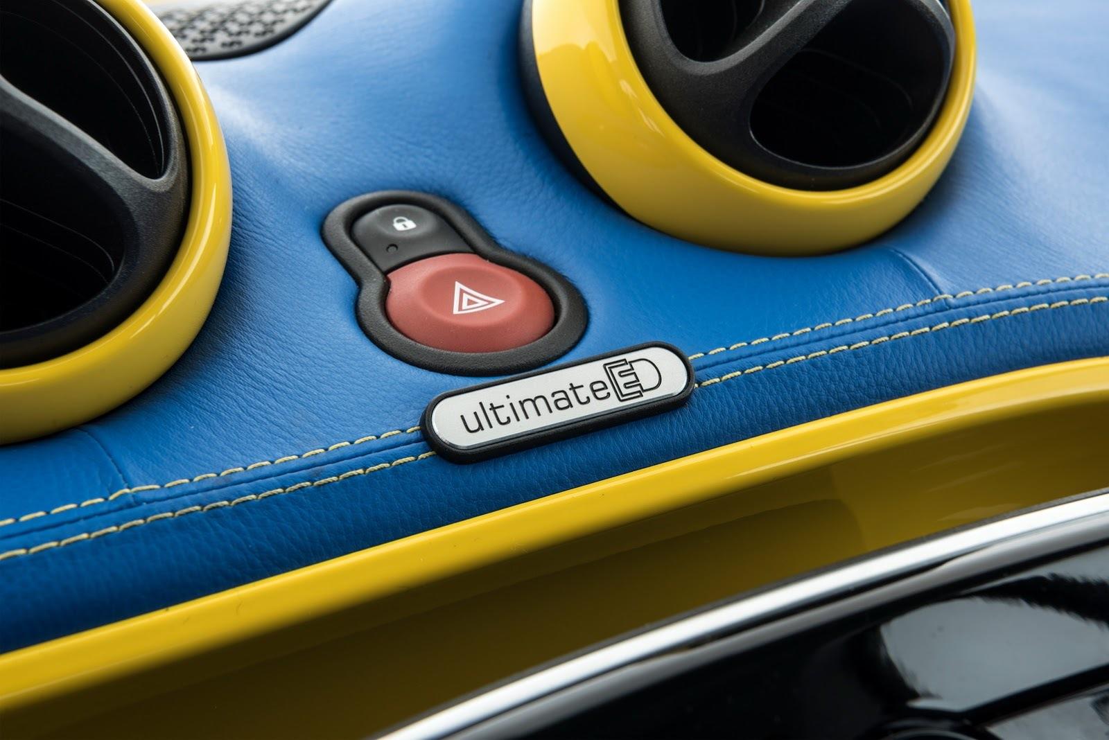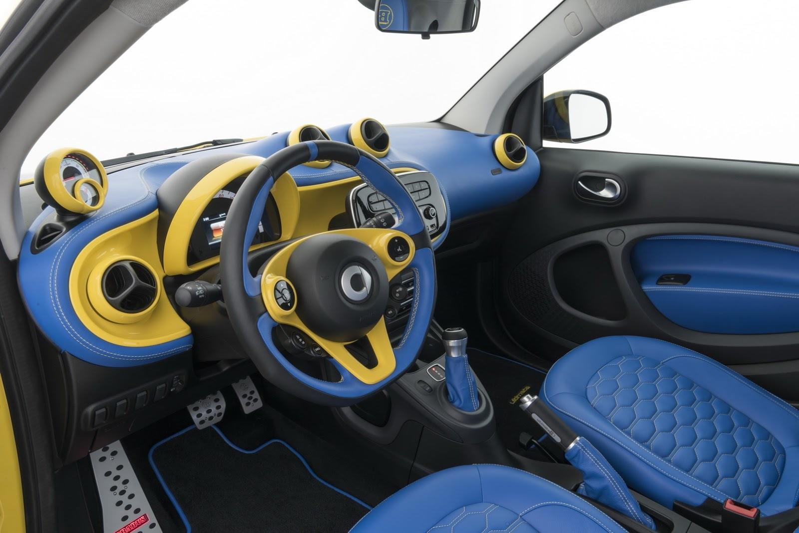 Además de este incremento de potencia Brabus ha equipado al fortwo eléctrico con unas nuevas llantas de 18 pulgadas y una nueva suspensión aderezando de paso su carrocería con unos nuevos paragolpes, con unos pasos de rueda ensanchados y un trabajado interior donde el cuero azul se abre paso entre el amarillo de la carrocería, revistiendo incluso el salpicadero, repleto de detalles a juego con el poco o nada discreto color de la carrocería.