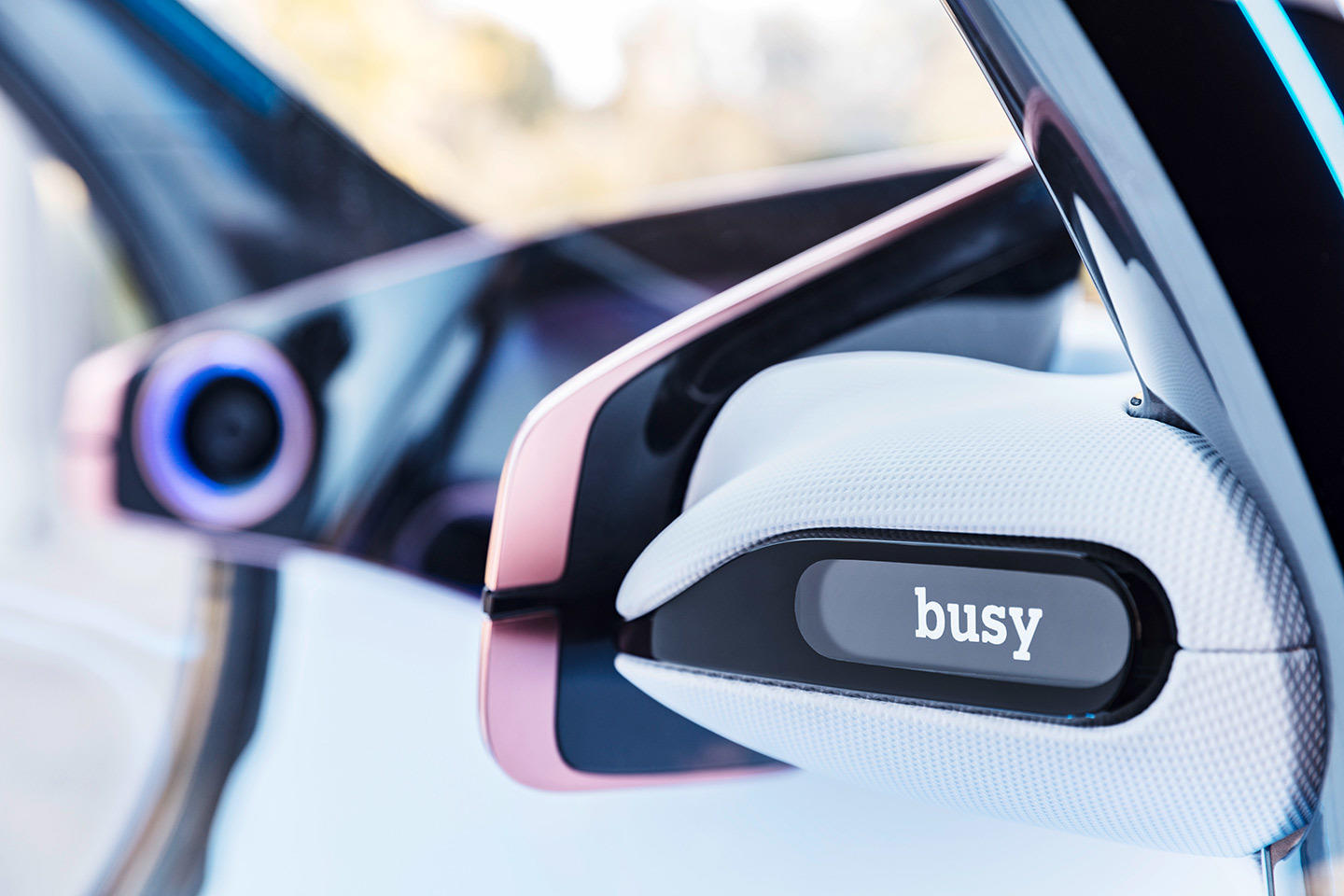 En el exterior, el smart vision EQ concept contaría, incluso, con paneles LED que servirían para facilitar las funciones de un coche compartido en la ciudad, como indicar su estado, libre u ocupado; dar la bienvenida al cliente; o indicar su destino.
