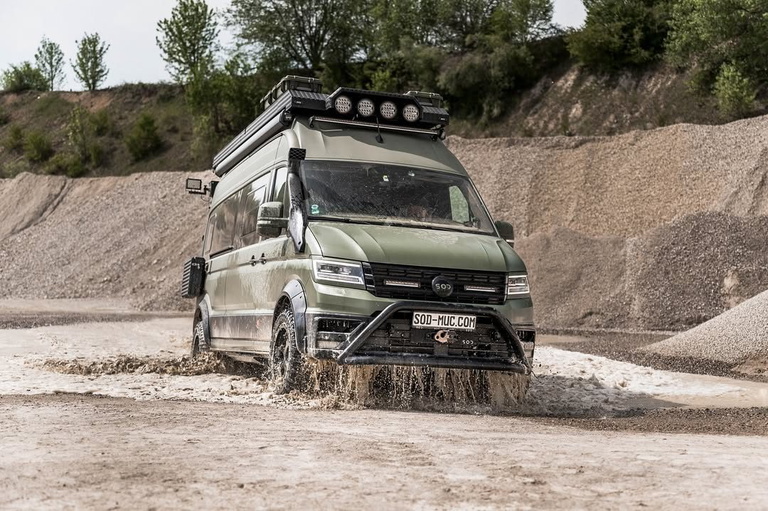 La base de esta furgoneta camper 4×4 es el MAN TGE 4×4, o lo que es lo mismo, una Volkswagen Crafter 4×4 que también utilizan (ambas furgonetas salen de la misma fábrica compartiendo plataforma). Su motor es un 4 cilindros diésel 2.0 TDI de 177CV y 410Nm. Eso sí SOD eleva esa potencia hasta los 245CV (sin datos de par motor). Aun con todo el peso, logra un consumo combinado de unos 10,5 litros a los 100km.
