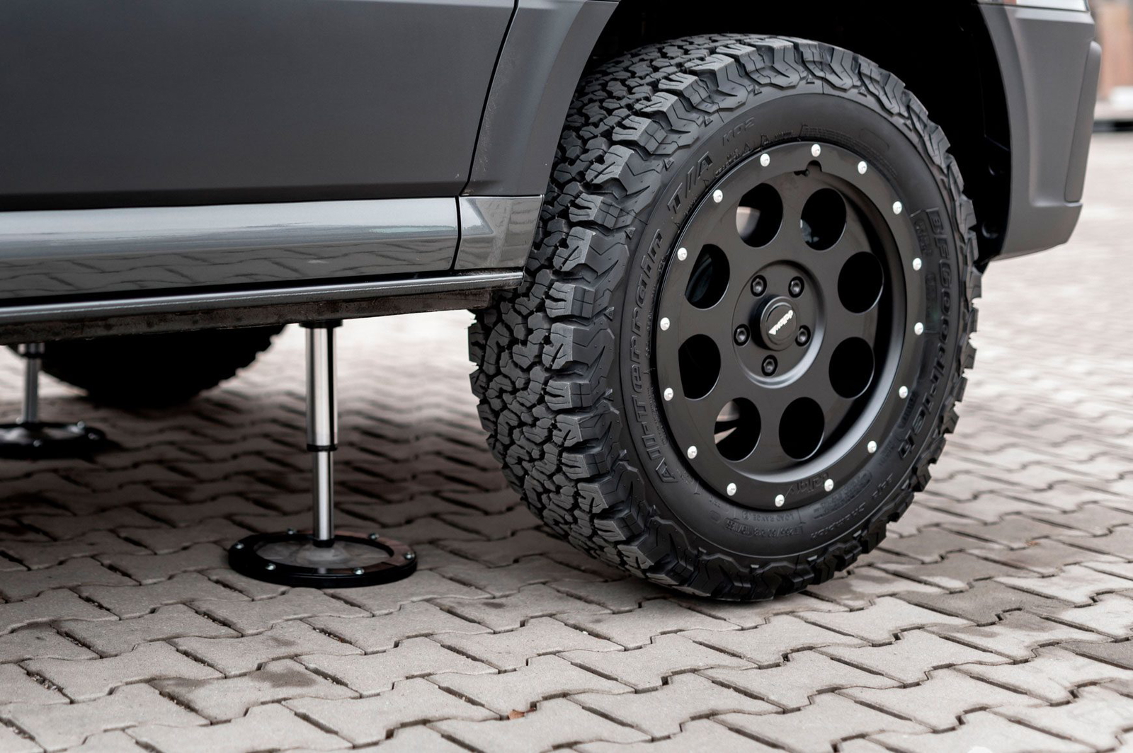 Emplea una caja de cambios automática de 8 velocidades, que lleva la tracción a las 4 esquinas para mover unos neumáticos todoterreno 285/50 R20 de BFGoodrich. Estos y la suspensión permiten una altura libre al suelo de algo más de 30cm, al tiempo que soportan un máximo de 4.800kg.