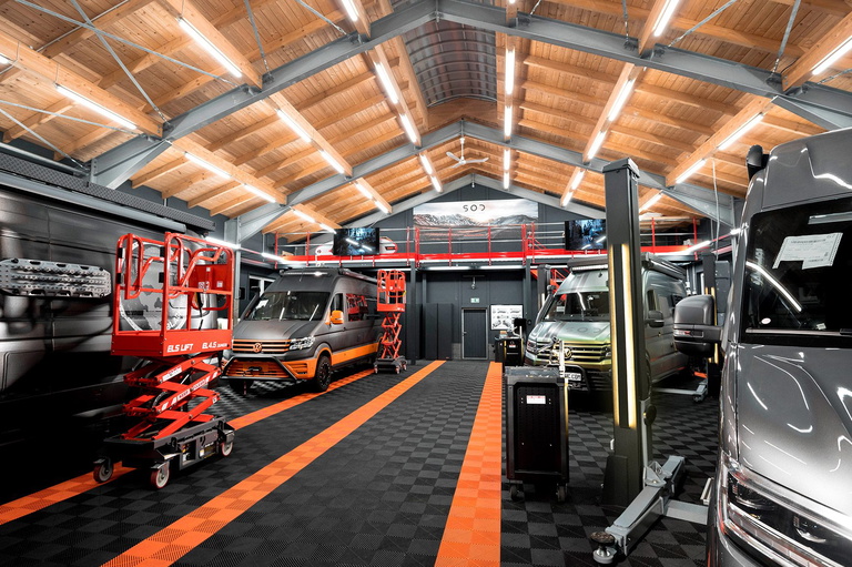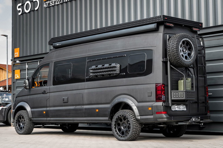 SOD es una empresa alemana bastante apasionada que puede ser de las más top en el segmento de la camperización. Su modelo, al que llaman «Base», tiene 3 niveles y este que vas a ver es el más tocho en cuanto autonomía, prestaciones y equipamiento dentro de la zona habitable.