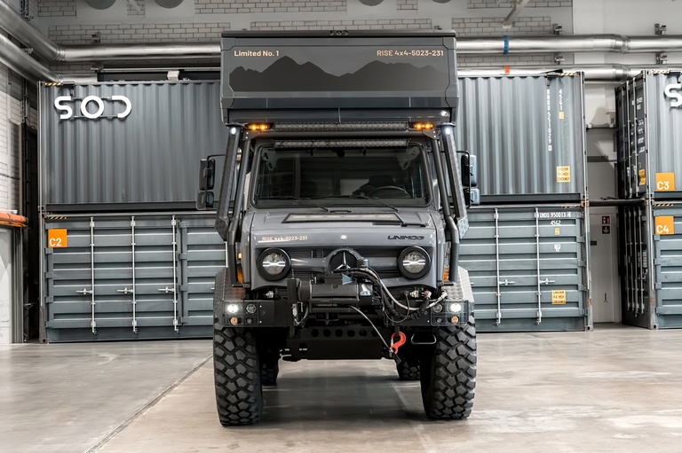 Centrándonos en este modelo, el Rise 4×4 toma como base el camión Mercedes Benz Unimog U5032. El diseño de carrocería es único para ellos y le han acoplado todo lo necesario para crear una suerte de suite presidencial que puede gatear por cualquier parte.