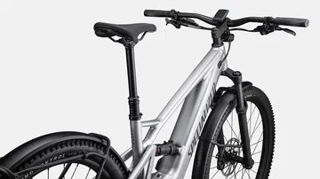 El sistema eléctrico es el añadido definitivo a la configuración de esta Specialized Turbo Tero X 4.0, que también presume de suspensión delantera RockShox Recon de 130 mm, amortiguador RockShox Deluxe de 190 mm, frenos hidráulicos SRAM G2 RE, transmisión monoplato SRAM SX Eagle, y algunos añadidos valiosos como la tija telescópica, el portaequipajes o las luces.