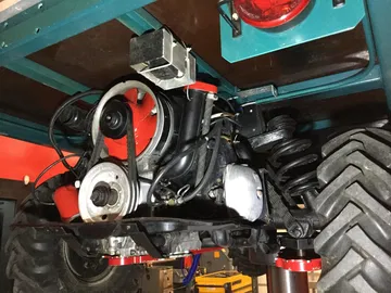 Esa configuración en pórtico significa que los palieres se sitúan por encima del centro de las ruedas, transmitiendo la potencia a estas mediante una reducción. Es por ello que en lugar de reductora, su caja de cambios de 5 velocidades cuenta con una primera marcha ultra-corta.
