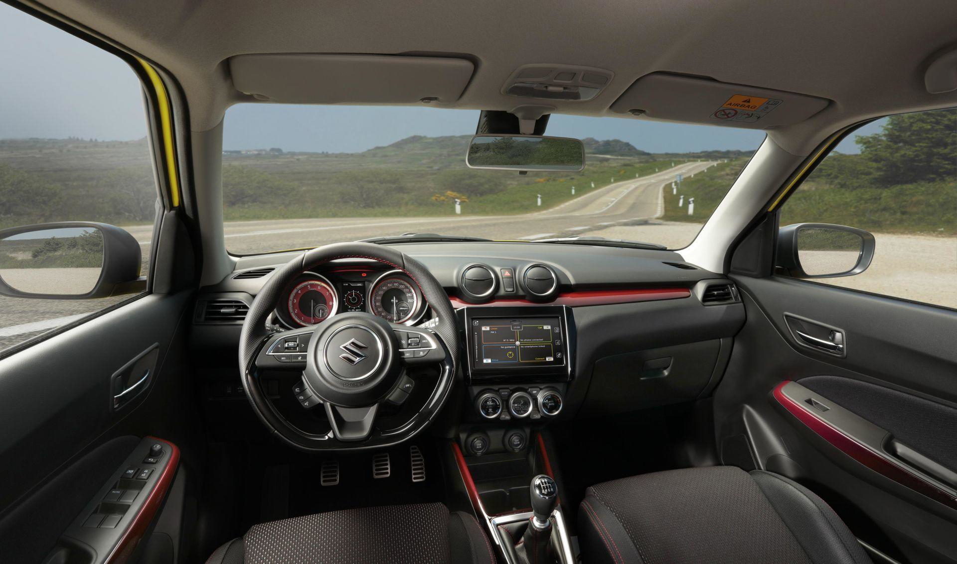 A nivel de diseño es un coche agresivo, pero sin caer en demasiadas estridencias. Está dotado de serie con llantas de 17 pulgadas de color oscuro, pintado en el mismo color amarillo que los Swift de rallyes de Suzuki Motorsport. Su kit de carrocería es deportivo, pero sin caer en demasiadas estridencias. Sólo dos tubos de escape traseros y un emblema específico presiden una zaga mucho más discreta que el frontal. Su habitáculo es más grande y ergonómico que nunca, con una instrumentación cuyo fondo está teñido de color rojo, al igual que diversas molduras y la iluminación del habitáculo. De serie cuenta con asientos deportivos tapizados en tela.