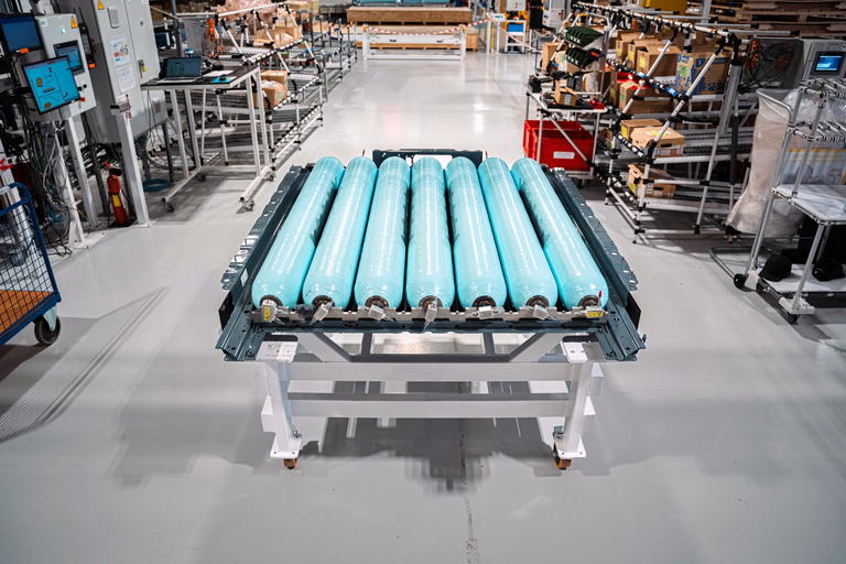 Se trata de siete depósitos de hidrógeno con un planteamiento totalmente nuevo. Ocupan menos espacio que los actuales, van empaquetados en un armazón y ofrecen más autonomía, unos 750 kilómetros, que es un 50% más respecto a los 500 km de los primeros prototipos presentados hace un par de años.