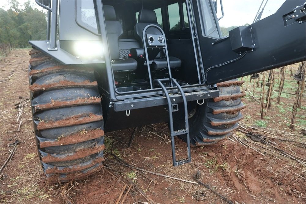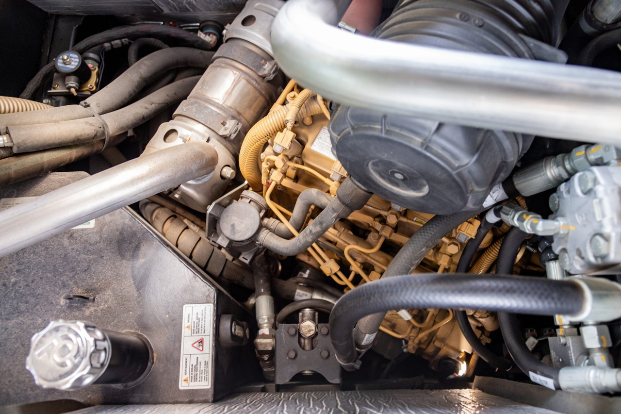 Por eso no necesita cientos de caballos. El motor turbodiésel Caterpillar 2.2 litros de 67cv genera su pico de par (207Nm) a solo 1400rpm y puede desplazar los casi 2500kg de este bicho a una velocidad de 40km/h.