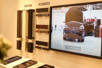 En estas tiendas, como la de Madrid que ya ha abierto sus puertas, el cliente no solo puede informarse de las características del coche, o verlo en directo, sino también de las posibilidades de configuración, existiendo espacios para ver el acabado de pintura sobre placas de aluminio que simulan la carrocería del coche, o ver y tocar los materiales que se emplean en algunos acabados, y en la tapicería.