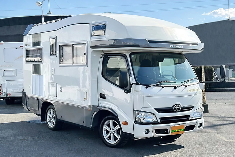 La base de la Camroad es el práctico camión ligero Toyota Dyna. Compañías como Vantech o AtoZ se han encargado de construir la carrocería de autocaravana encima.